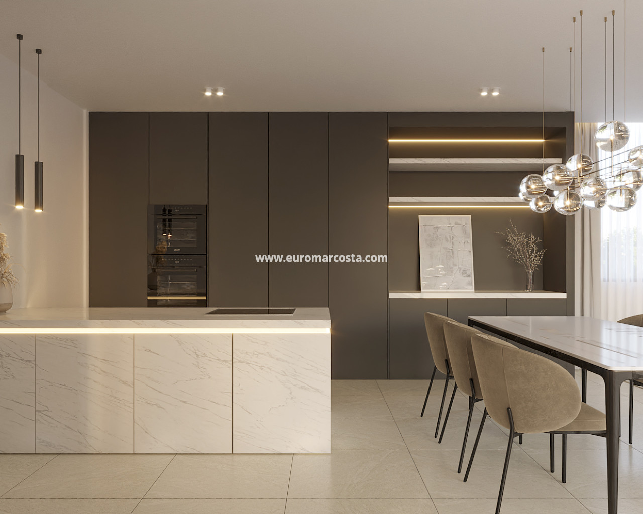 Die Häuser wurden sorgfältig mit Materialien und Ausstattungen entworfen, die auch die anspruchsvollsten Menschen ansprechen und überzeugen. Jeder Raum, jeder Moment, alles zählt. Deshalb haben wir die Anlage um einen Wellnessbereich mit einem Außen-/Hallenschwimmbad und einer Sauerstoffkabine modernster Technologie erweitert, die als Verjüngungskur dient und für Spitzensportler unerlässlich ist. Hightech-Wohnungen, die mit den neuesten Trends bei Küchen, Bädern und Bodenbelägen ausgestattet sind und vor allem durch ihre unglaubliche Aussicht ein kleines Paradies unter der Sonne darstellen.