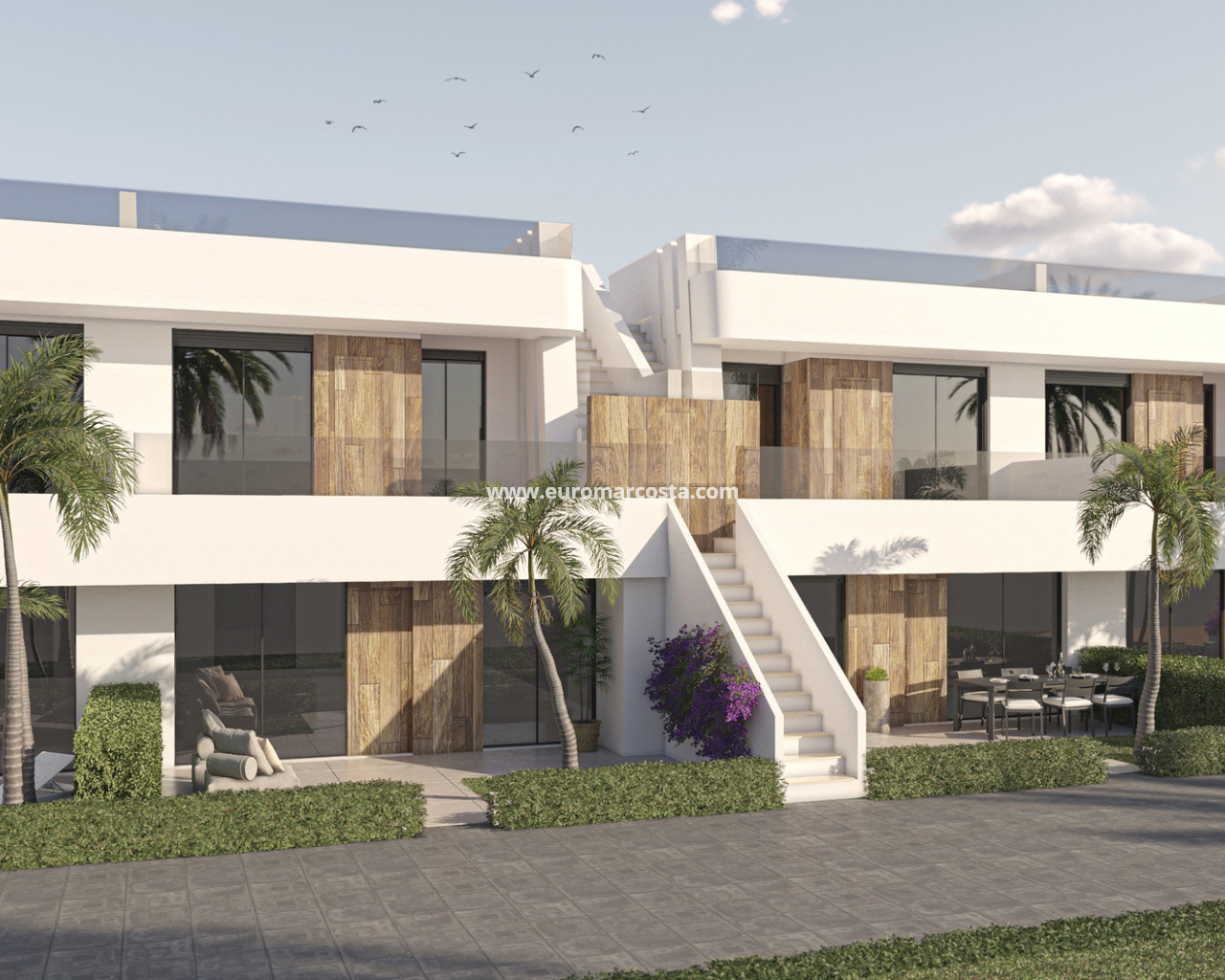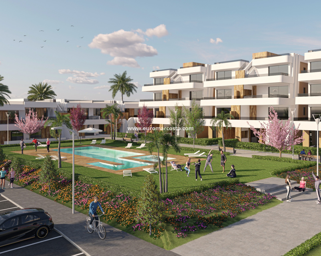 Im Inneren sind die Immobilien mit modernen Geräten und Einbauschränken ausgestattet, die den Stauraum optimieren. Die Vorinstallation der Klimaanlage sorgt dafür, dass jedes Zuhause leicht an die Temperaturvorlieben der Bewohner angepasst werden kann. Mit Optionen von 2 oder 3 Schlafzimmern und 2 Bädern sind diese Wohnungen darauf ausgelegt, Komfort und Funktionalität zu bieten. Die intelligente Raumaufteilung der Innenräume stellt sicher, dass jeder Winkel des Hauses optimal genutzt wird und eine gemütliche und praktische Umgebung für den Alltag bietet.