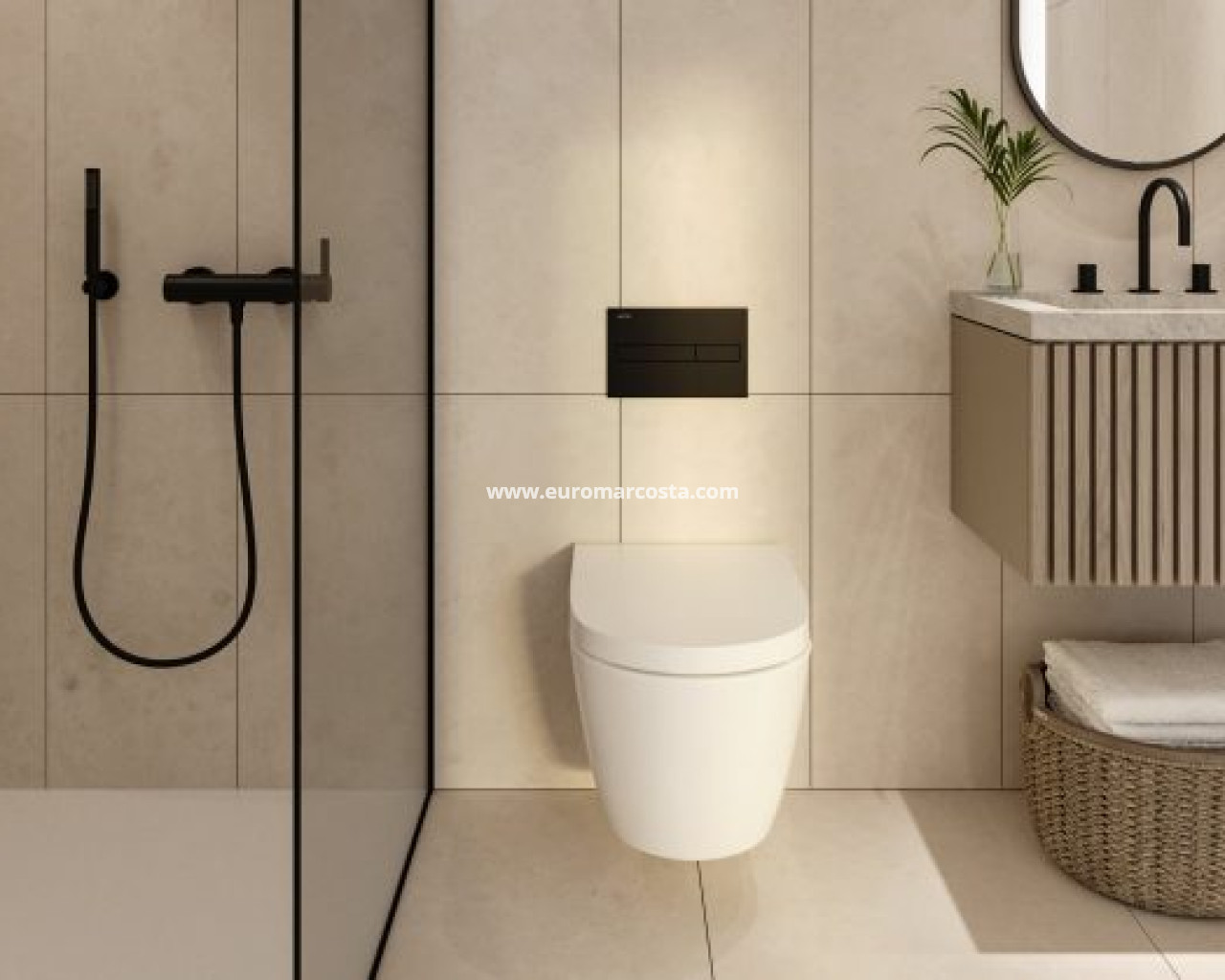 Die Wohnungen sind so gestaltet, dass sie maximalen Komfort und Funktionalität bieten. Die Apartments und Penthäuser verfügen über 2, 3 oder 4 Schlafzimmer und 2 Bäder und passen sich den Bedürfnissen verschiedener Familientypen an. Die Aufteilung umfasst private Terrassen, ideal, um die frische Luft in Privatsphäre zu genießen. Die Innenräume sind mit Einbauschränken, Porzellanfliesenböden und einem Smart-Home-System ausgestattet, das die Steuerung verschiedener Hausfunktionen erleichtert. Die Integration von Klimaanlage und modernen Geräten sorgt das ganze Jahr über für ein angenehmes Ambiente. Elektrische Rollläden verleihen den Räumen einen Hauch von Komfort und Modernität.