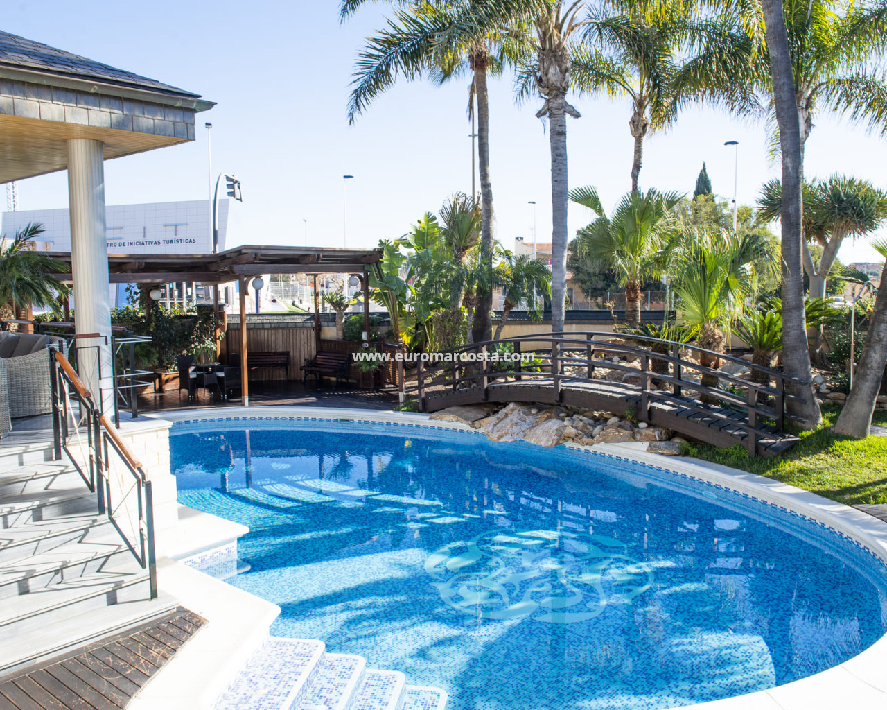 Im Inneren ist die Villa mit fünf Schlafzimmern und fünf Bädern ausgestattet, was viel Platz für große Familien oder Gäste bietet. Der Marmorboden verleiht den Innenräumen einen Hauch von Eleganz und Raffinesse. Die Immobilie ist möbliert, was einen sofortigen Einzug erleichtert. Zudem ist eine Klimaanlage vorhanden, um das ganze Jahr über Komfort zu gewährleisten. Einbauschränke bieten praktische und effiziente Stauraumlösungen.