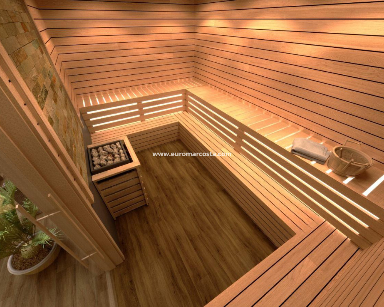 Die Außenbereiche dieser Wohnanlage sind darauf ausgelegt, einen entspannten und komfortablen Lebensstil zu bieten. Die Bewohner können großzügige Terrassen genießen, die perfekt sind, um sich im Freien zu entspannen und das mediterrane Klima zu genießen. Die Erdgeschosswohnungen bieten direkten Zugang zu den Gemeinschaftsgärten und schaffen eine grüne und ruhige Umgebung. Darüber hinaus verfügen die Penthäuser über private Solariums, ideal, um die Sonne in völliger Privatsphäre zu genießen. Die Gemeinschaft verfügt auch über eine Gemeinschaftsgarage, mit der Möglichkeit, bei Bedarf einen zusätzlichen Parkplatz zu erwerben.