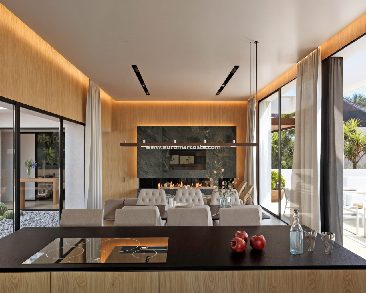 Das Innere der Villa ist so gestaltet, dass es maximalen Komfort und Funktionalität bietet. Mit insgesamt 5 Schlafzimmern ist die Immobilie perfekt für eine große Familie oder für Gäste geeignet. Die 4 Badezimmer gewährleisten Komfort und Privatsphäre für alle Bewohner. Die Villa ist mit Klimaanlage ausgestattet, die das ganze Jahr über eine angenehme Atmosphäre schafft. Zudem verfügt sie über eine Fußbodenheizung, die in den kälteren Monaten zusätzlichen Komfort bietet. Einbauschränke bieten effizienten und eleganten Stauraum und tragen zur Ordnung und Ästhetik des Hauses bei.