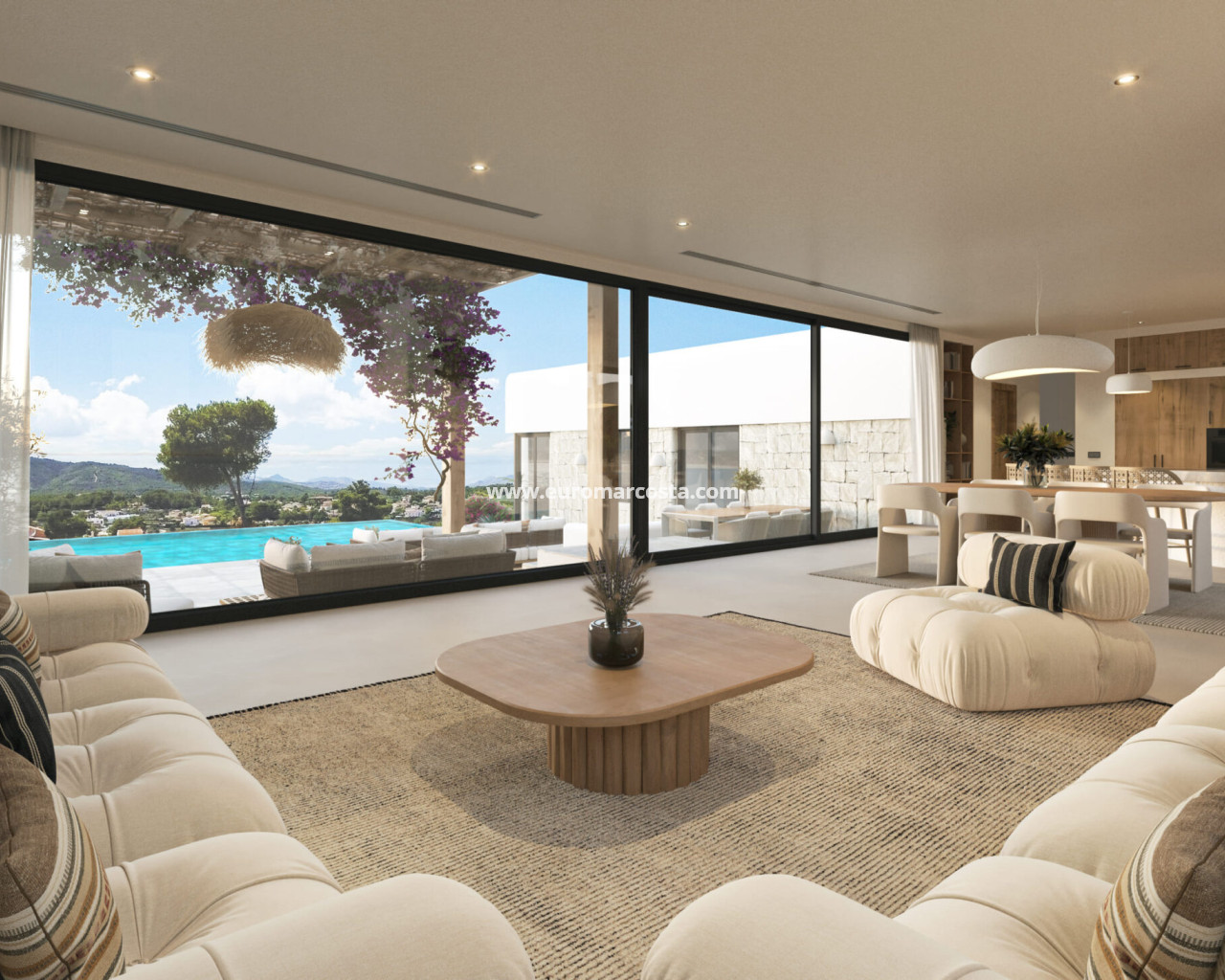Das Innere der Villa ist sorgfältig gestaltet, um maximalen Komfort und Funktionalität zu bieten. Mit drei Schlafzimmern ist die Immobilie ideal für Familien oder Gäste. Einbauschränke in jedem Zimmer bieten reichlich Stauraum und sorgen für Ordnung und Ästhetik. Die zwei Bäder sind ausgestattet, um Komfort und Stil zu bieten. Die Fußbodenheizung sorgt das ganze Jahr über für eine angenehme Temperatur und schafft eine gemütliche Atmosphäre in den kälteren Monaten. Die Aufteilung umfasst eine Garage, die Komfort und Sicherheit für das Parken von Fahrzeugen bietet.