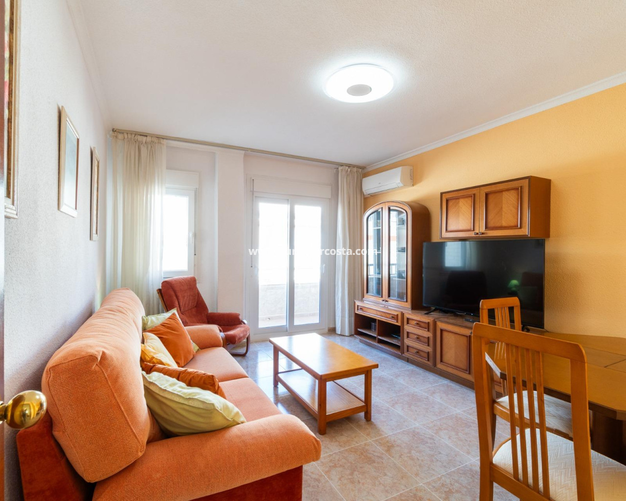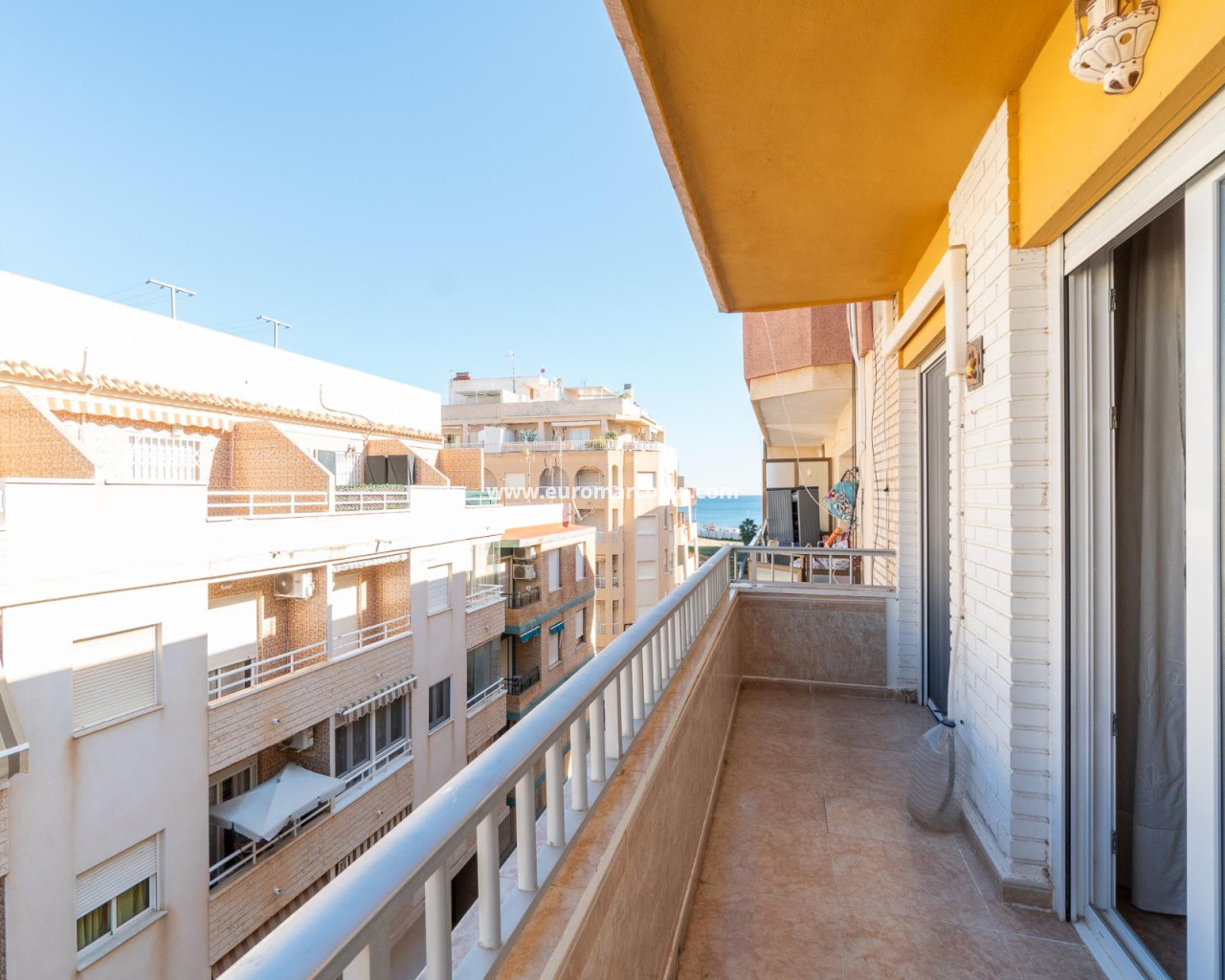 Entdecken Sie dieses charmante Penthouse in bester Lage von Torrevieja, nur drei Gehminuten vom wunderschönen Strand Playa del Cura entfernt.. . Mit einer Wohnfläche von 75 m2 bietet diese Immobilie einen teilweisen Meerblick, der ihren besonderen Reiz unterstreicht.. . Sie verfügt über zwei geräumige Doppelzimmer, ideal zum Entspannen und für Familien.. . Zudem bietet sie ein gut aufgeteiltes Badezimmer und einen praktischen Hauswirtschaftsraum, der Ihren Alltag erleichtert.. . Alle Fenster wurden 2022 erneuert und sorgen so für mehr Energieeffizienz und Schallschutz.. . Dank der strategischen Lage im obersten Stockwerk des Gebäudes können Sie auf dem gemeinschaftlichen Solarium das ganze Jahr über das sonnige Mittelmeerklima genießen, ohne sich Gedanken über die Nachbarn darüber machen zu müssen.. . Ein weiterer wichtiger Punkt: Das Penthouse wird komplett möbliert verkauft!. . Dieses Penthouse ist die perfekte Wahl, um das mediterrane Klima an der Costa Blanca zu genießen!
