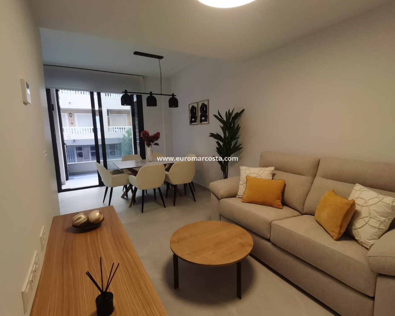 wohnung in Torrevieja für ein neues Leben direkt am Meer Diese neue Wohnanlage in Torrevieja liegt nur 300 Meter von der fantastischen Playa del Cura entfernt, einem idealen Ort, um an den schönen Sandstränden spazieren zu gehen und sich im sauberen Wasser abzukühlen. Der Name dieser Wohnanlage, Skandinavia III, ist sicher das Zuhause, das Sie für Ihren Familienurlaub am Strand oder für Ihren glücklichen Ruhestand suchen. Diese ruhige und sichere Urbanisation verfügt über exklusive Dienstleistungen wie einen schönen Gemeinschaftspool auf dem Dach, Grünflächen, die sich perfekt für die Freizeitgestaltung eignen, einen Aufzug und die Möglichkeit einer Tiefgarage. Die Wohnungen reichen vom Erdgeschoss bis zum fünften Stock (Penthäuser mit eigenem Solarium). In diesem Fall können Sie eine herrliche Wohnung im Erdgeschoss mit einer angenehmen Terrasse und einem einfachen Zugang zur Straße und zu den Freizeitbereichen genießen, da Sie den Poolbereich über den Aufzug des Gebäudes erreichen können. Diese Immobilie bietet einen wohlhabenden Lebensstil, mit vielen Sonnenstunden, die Sie nach Belieben genießen können, und mit einer endlosen Liste von Annehmlichkeiten und Aktivitäten für die ganze Familie und alle Altersgruppen, um Sie während Ihres Aufenthalts zu unterhalten. Einkaufszentren, Bowlingbahnen und KinosGolfplätzeSandstrände und sauberes WasserWasserparksNaturparks und Gärten zum SpazierengehenStrandbars, Restaurants, usw Erfahren Sie mehr über dieses Neubaugebiet zum Verkauf in Torrevieja, Costa Blanca Wenn Sie ein schönes Zuhause nur wenige Meter vom Mittelmeer entfernt genießen möchten, werden Sie diese neuen Wohnungen in Torrevieja lieben. Sie sind modern, hell und verfügen über geräumige Außenbereiche, in denen man sich bei bestem Klima entspannen kann.