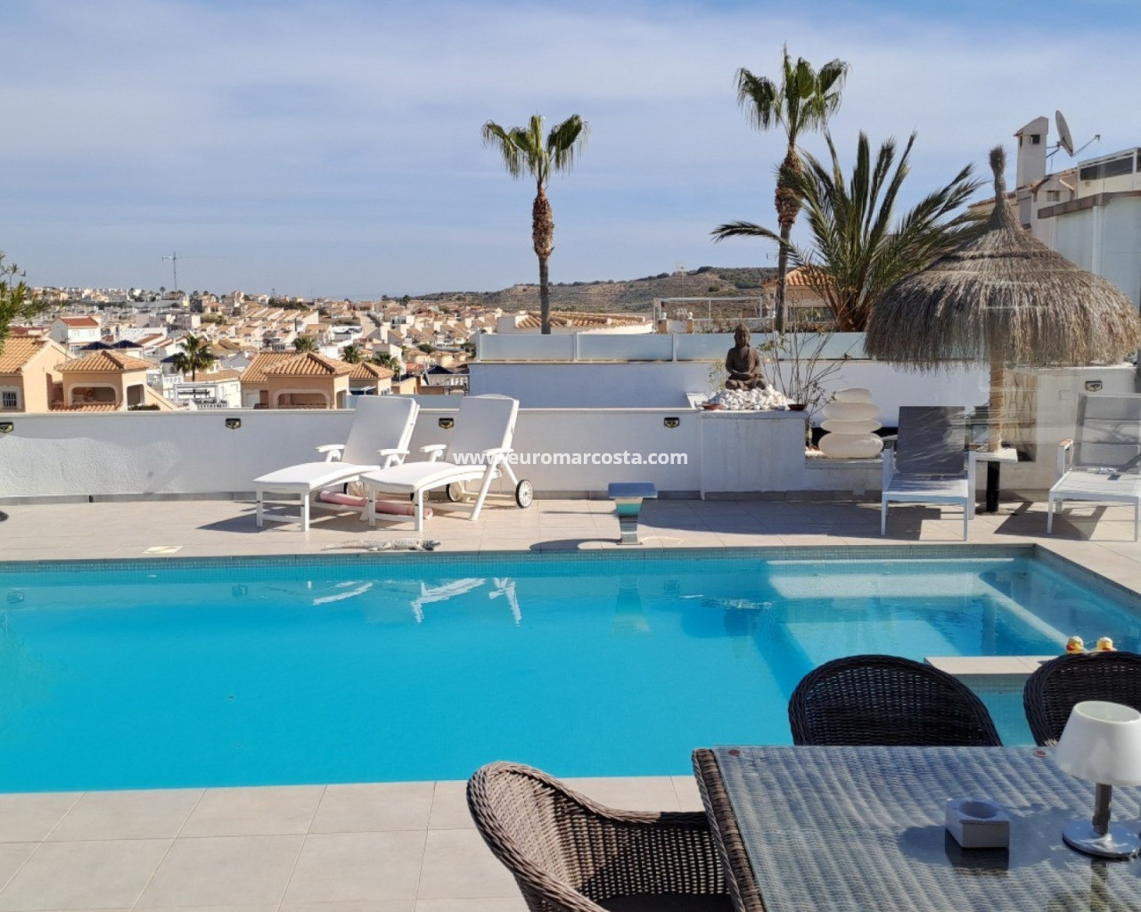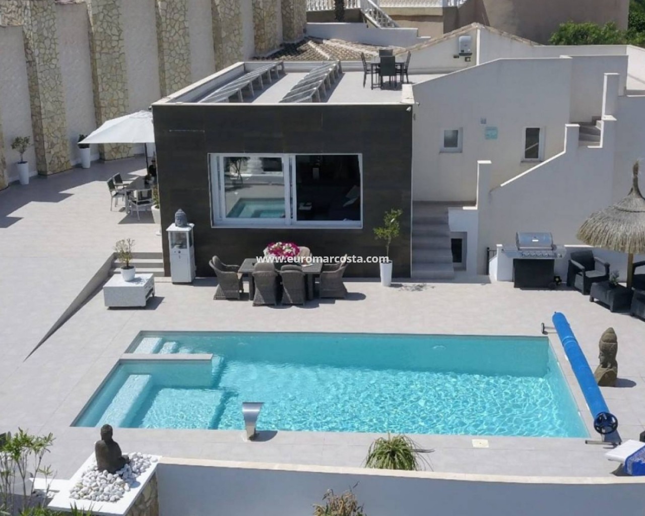What a stunning detached luxury villa in Ciudad Quesada, This unique investment opportunity with 2 independent apartments, a private studio, giving an ideal opportunity for a Bed & Breakfast or big family living. Set on a large 1071 m² plot, this modern property consists of three separate buildings, including: A main villa with an expansive open-plan living and dining area, designer kitchen with island, 2 large bedrooms with en-suite bathrooms, and a spectacular 120 m² rooftop solarium with panoramic views of the valley and distant sea. A 60 m² apartment with 2 bedrooms, 1 bathroom, living room, and kitchenette.A private studio with 1 bedroom and 1 bathroom, perfect for guests or rental income.An additional building with 1 bedroom and 1 bathroom, currently used as an office, but easily convertible into a guest suite or storage area. The villa boasts a beautifully landscaped garden with artificial grass, private heated swimming pool, outdoor kitchen, barbecue area, and ample parking via an automatic gate. Smart home features include electric blinds, security cameras, solar panels, infrared heating, and fiber internet. Enjoy the best of Mediterranean living with premium amenities such as a spa/hot tub, garage, covered terrace, children's playground, and fully equipped kitchen. The property is being sold fully furnished, ready to move in or generate immediate rental income. Don’t miss this rare opportunity to own a luxurious multi-unit villa in one of Costa Blanca’s most desirable areas – ideal for large families, remote working, or hospitality ventures. Key Features: 5+ Bedrooms 5 Bathrooms 3 Independent Living Units Private Heated Pool & Rooftop Solarium Ready Smart Home Features & Solar Energy Ideal for B&B or Holiday Rentals Close to Golf Courses,