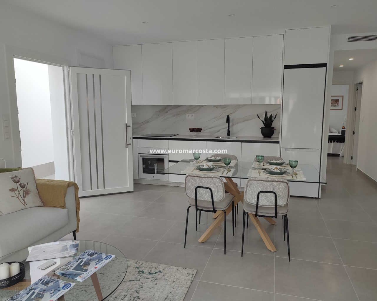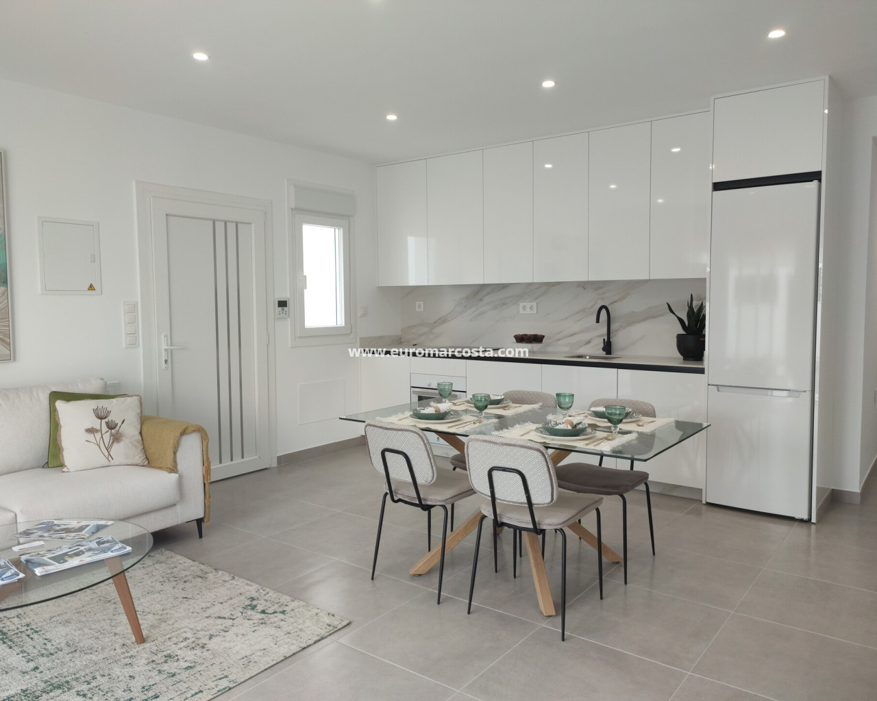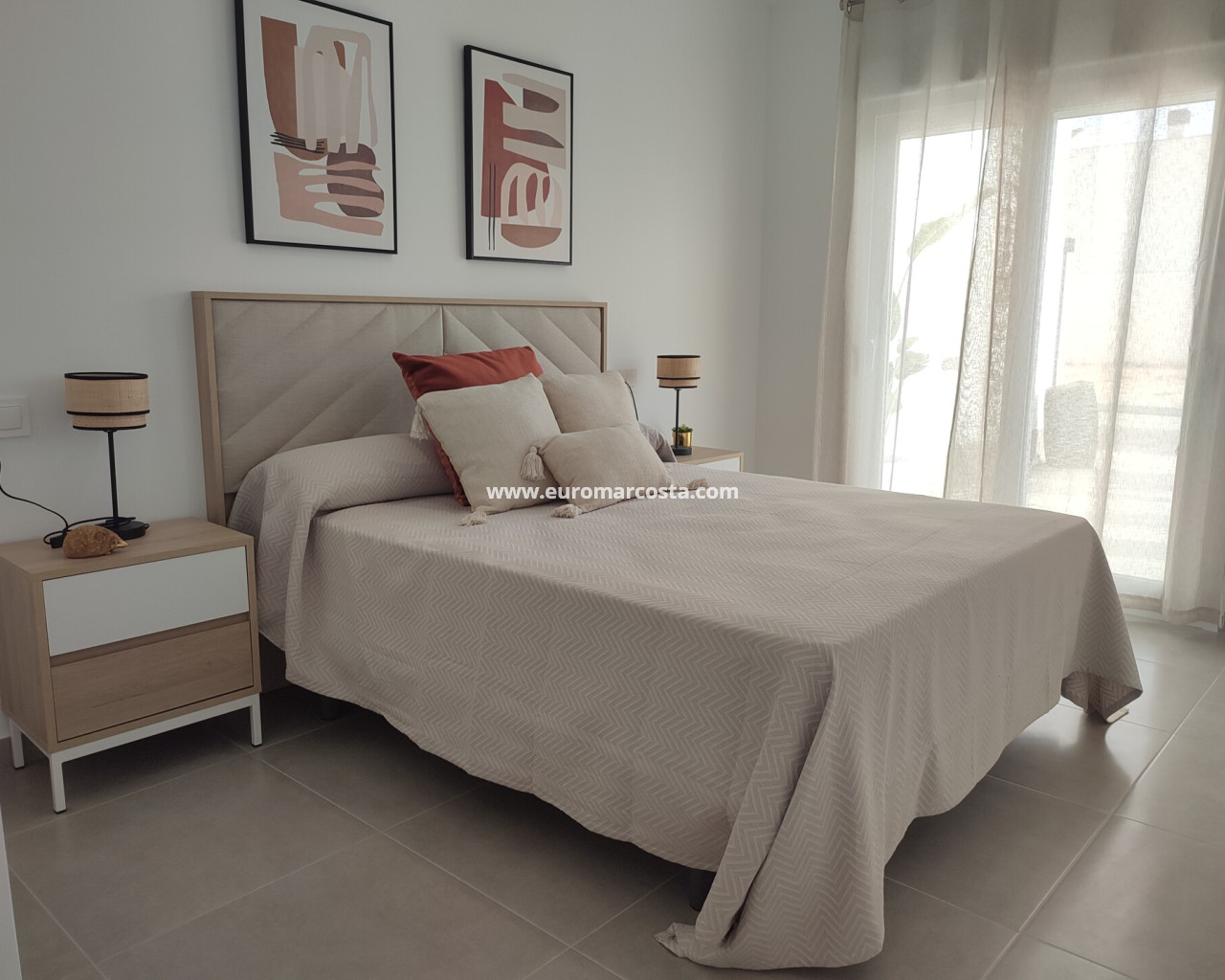 The homes feature attractive outdoor spaces including a private pool, perfect for enjoying the Mediterranean climate. Additionally, each property includes a solarium, offering additional outdoor space for relaxation or socializing. The presence of a terrace complements the exterior design, providing an ideal spot to enjoy the views and natural surroundings of Torre-Pacheco.