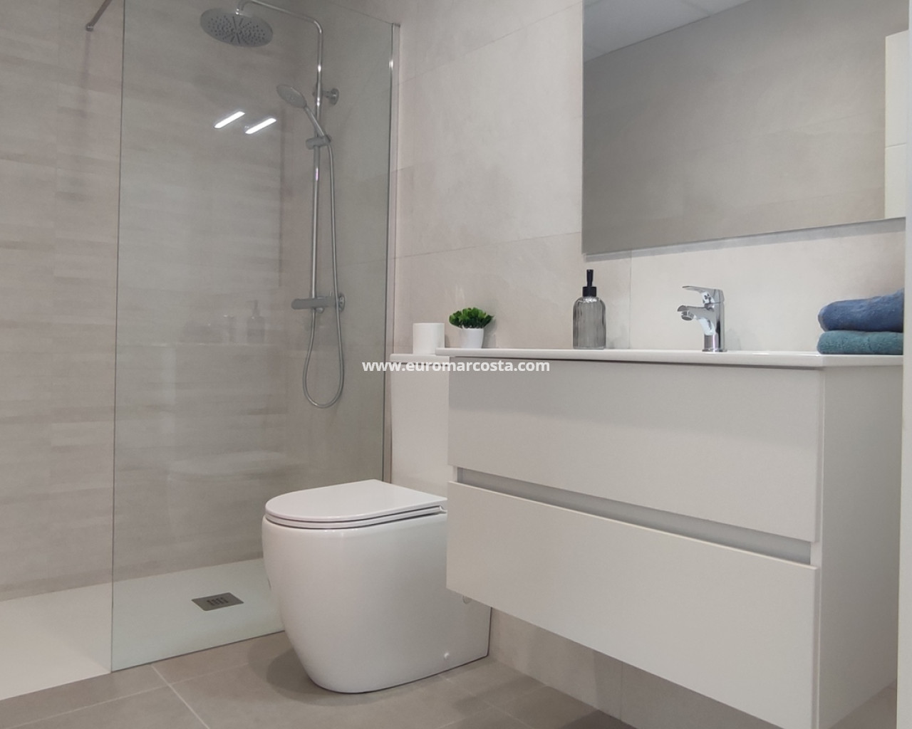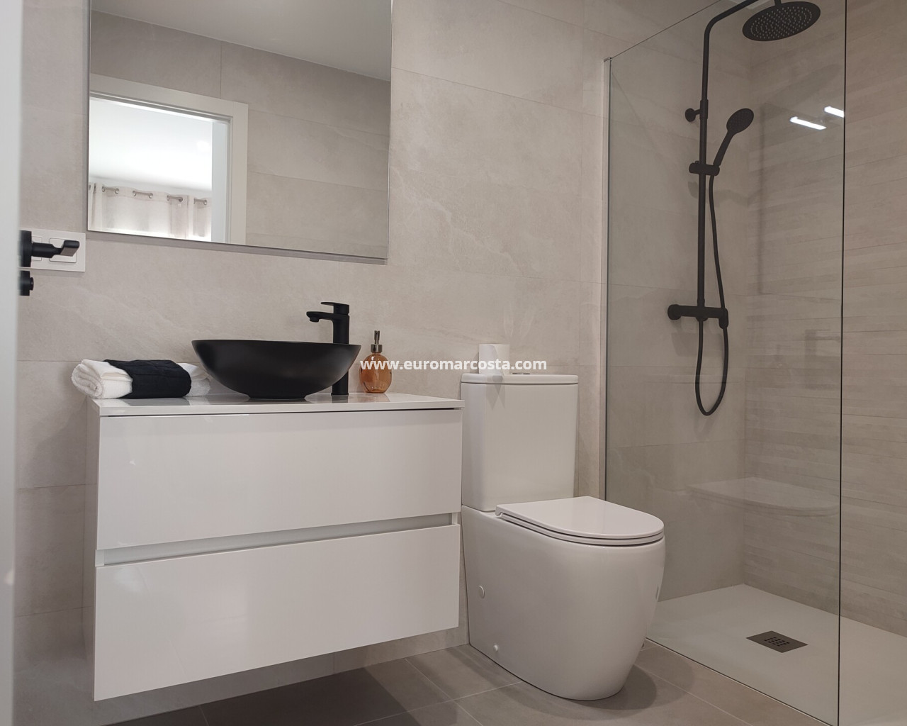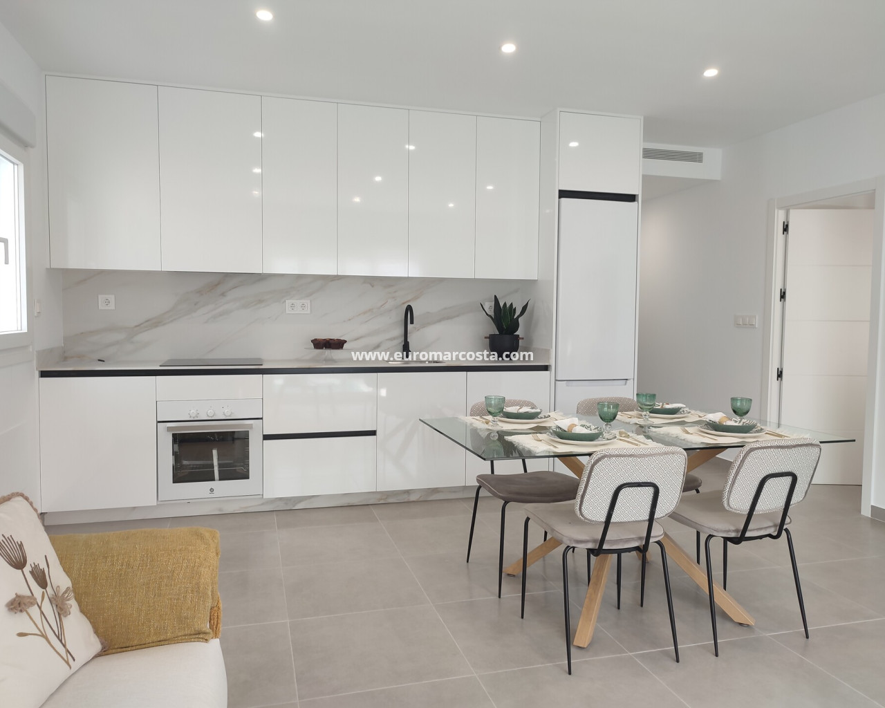 The homes feature attractive outdoor spaces including a private pool, perfect for enjoying the Mediterranean climate. Additionally, each property includes a solarium, offering additional outdoor space for relaxation or socializing. The presence of a terrace complements the exterior design, providing an ideal spot to enjoy the views and natural surroundings of Torre-Pacheco.