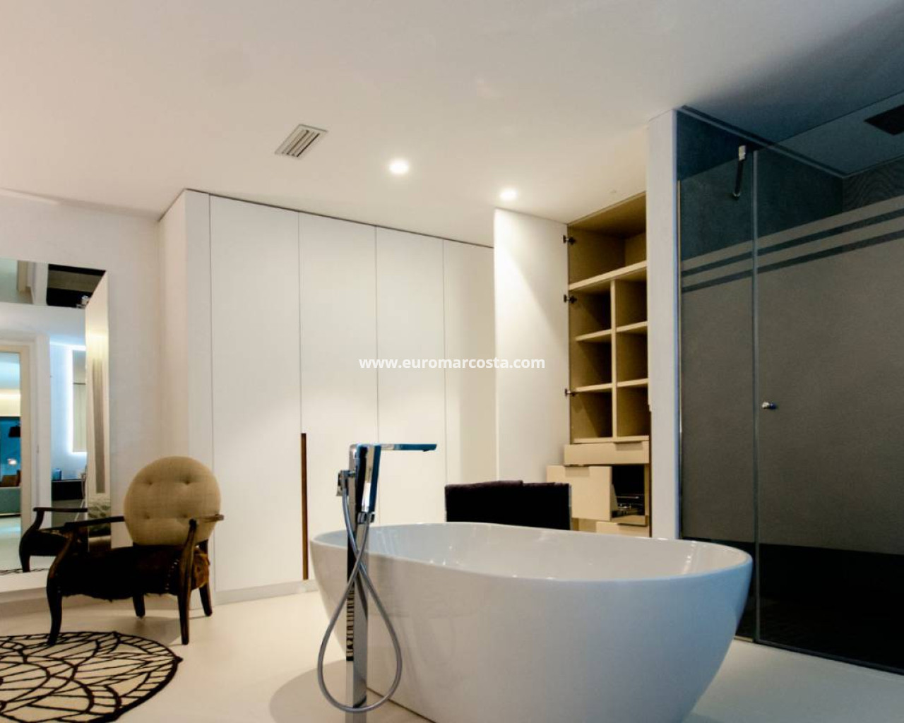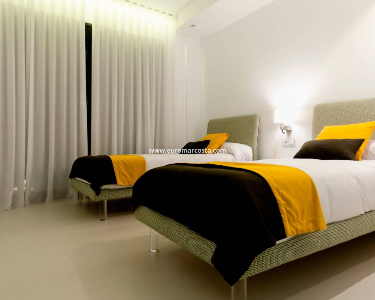 The exterior design of the villas in Orihuela stands out for its elegance and functionality. Each property features a private garden, perfect for enjoying the Mediterranean climate. The spacious terraces offer additional space for outdoor leisure, while the solarium is ideal for sunbathing in total privacy. Additionally, each villa has a private pool, providing a personal oasis to cool off during the warm summer days. Access to a private garage ensures convenience and security for vehicles.