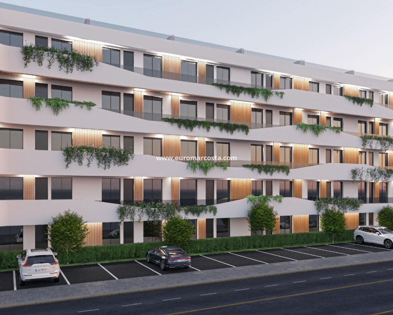 The outdoor environment of this residential is carefully designed to offer a space of tranquility and enjoyment. The garden areas provide a natural and relaxing setting, ideal for outdoor walks or enjoying a moment of reading under the sun. Additionally, residents can enjoy a community pool, perfect for cooling off during warm summer days. Ground floor properties feature private gardens, offering additional space for outdoor leisure, while penthouses have solariums that allow for panoramic views and enjoyment of the Mediterranean climate.