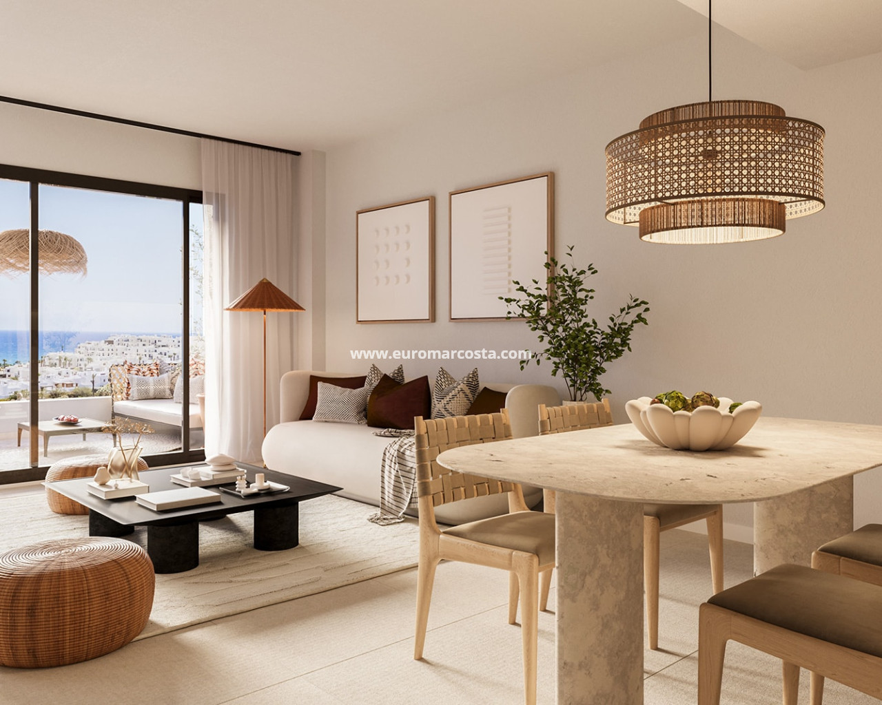 The properties feature outdoor spaces that invite relaxation and enjoyment of the natural surroundings. Each residence has a terrace, ideal for contemplating sea views and enjoying the Mediterranean climate. Additionally, some typologies include a private garden and solarium, offering additional space for outdoor leisure. The location in Macenas allows privileged access to the coast, enhancing the experience of living on the seafront.