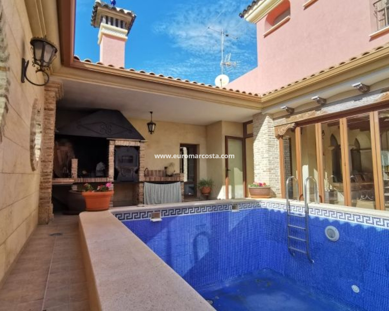 The elegance of timeless design with the comfort of contemporary luxury. In the heart of a privileged setting stands this exceptional luxury home, an architectural masterpiece conceived by prestigious designers.Inspired by traditional Spanish manor houses—with its iconic interior patio—this property reinterprets classic elegance, open spaces, and the highest-quality materials. Architecture with soul Designed in a "U" shape, the home revolves around an interior patio with a private pool, creating an intimate and luminous atmosphere where every corner exudes harmony and well-being.Water, stone, and natural light blend in perfect balance, giving the home an atmosphere of serenity and exclusivity. Layout and spaces Main floor• Spectacular living area with large windows and direct access to the patio. • Signature kitchen, fully equipped with high-end appliances. • Indoor pool and chill-out area integrated into the heart of the home. • Elegant living and dining spaces, designed for comfort and entertaining. First Floor• Sleeping area comprised of suite-style bedrooms, each with a private bathroom, built-in wardrobes, and privileged views. • Master bedroom with a dressing room and designer bathroom, conceived as a true haven of well-being. Ground Floor• A 500 m² space currently used for commercial or professional purposes, with independent access. • Ideal for a showroom, design office, art gallery, or high-end business. Details that make the difference• Signature architecture and exclusive finishes• U-shaped design with a central courtyard and pool• Suites with private bathrooms and fine materials• Bright, functional, and elegant spaces• 500 m² space with multiple uses• Perfect combination of residential and professional space A unique architectural gem More than just a home, this Maison is a statement of style and sophistication, where every detail has been carefully thought out to offer an unparalleled living experience.A property destined for those seeking exclusivity, privacy, and distinction.