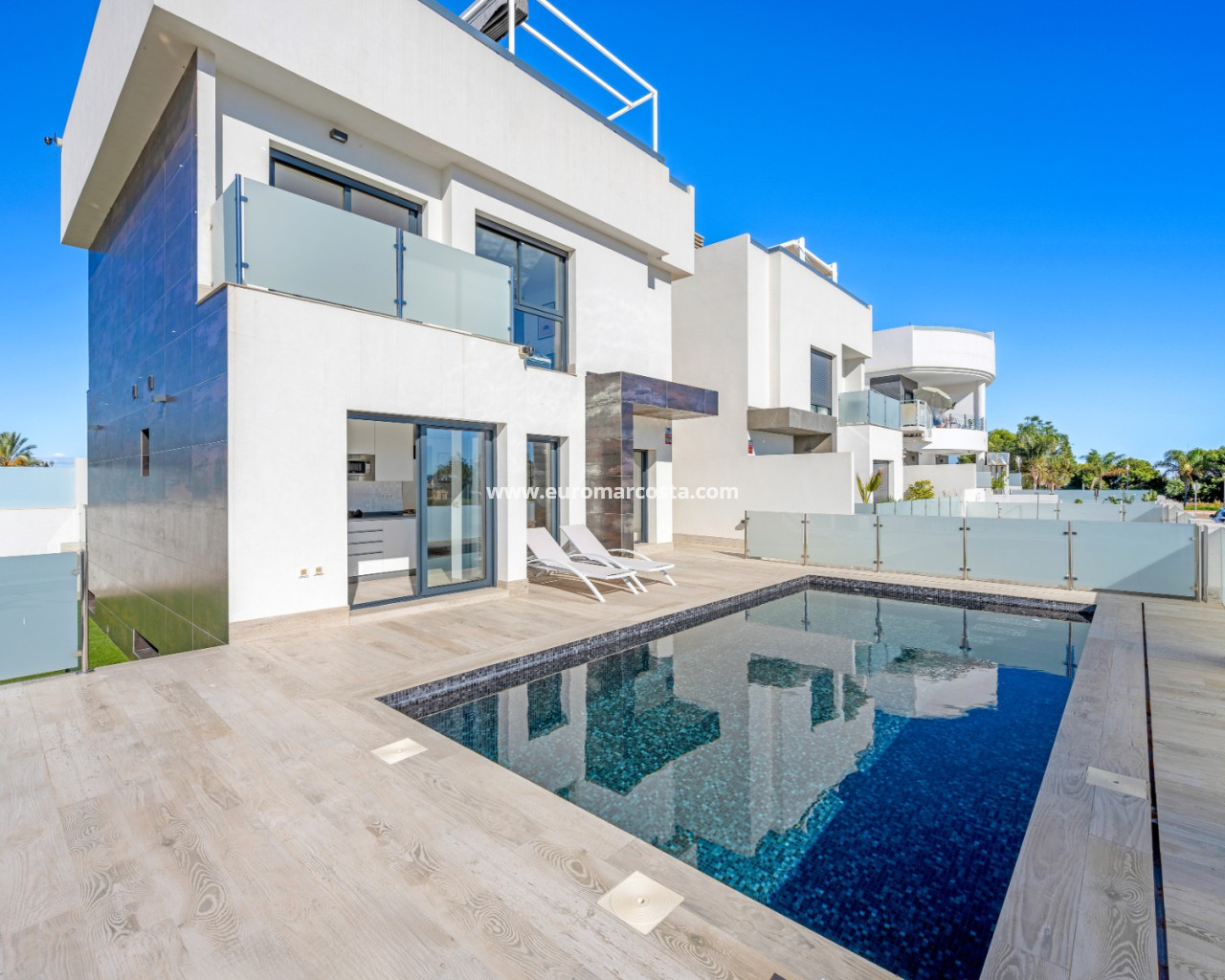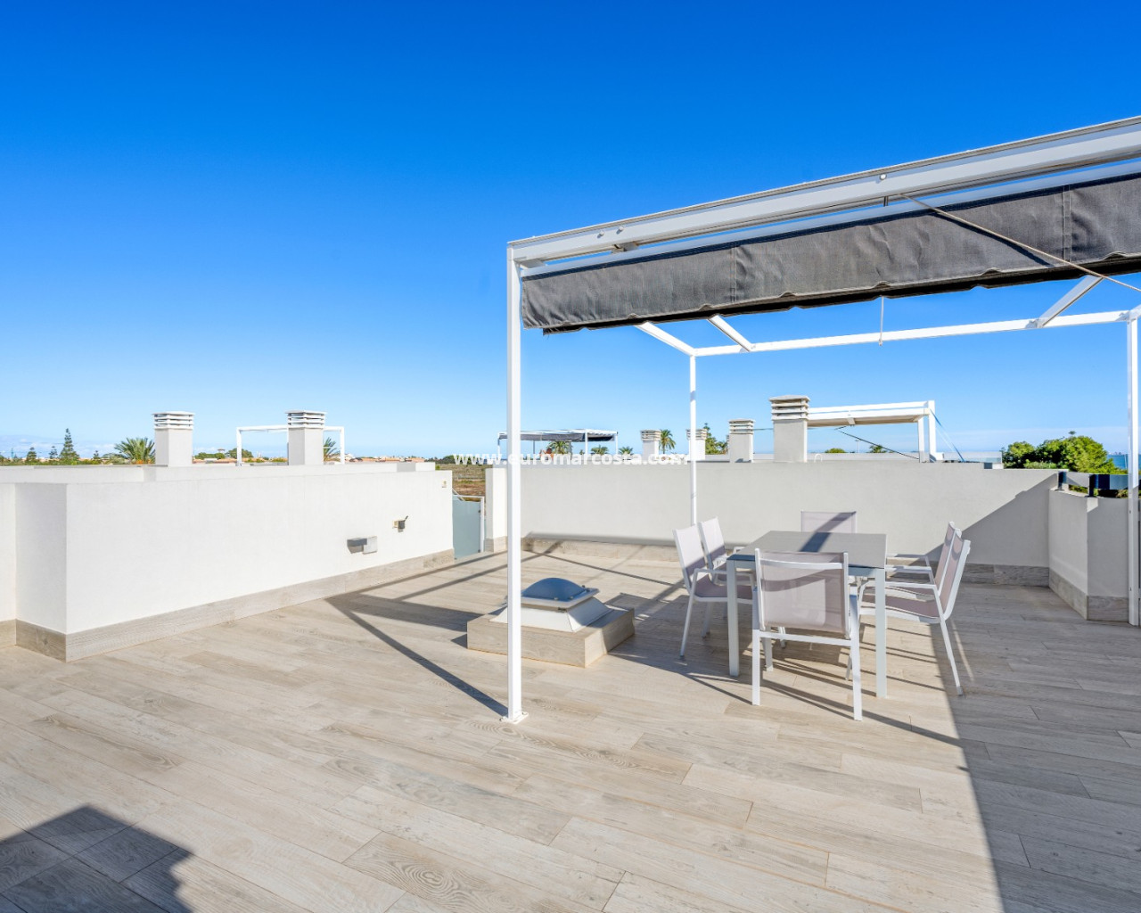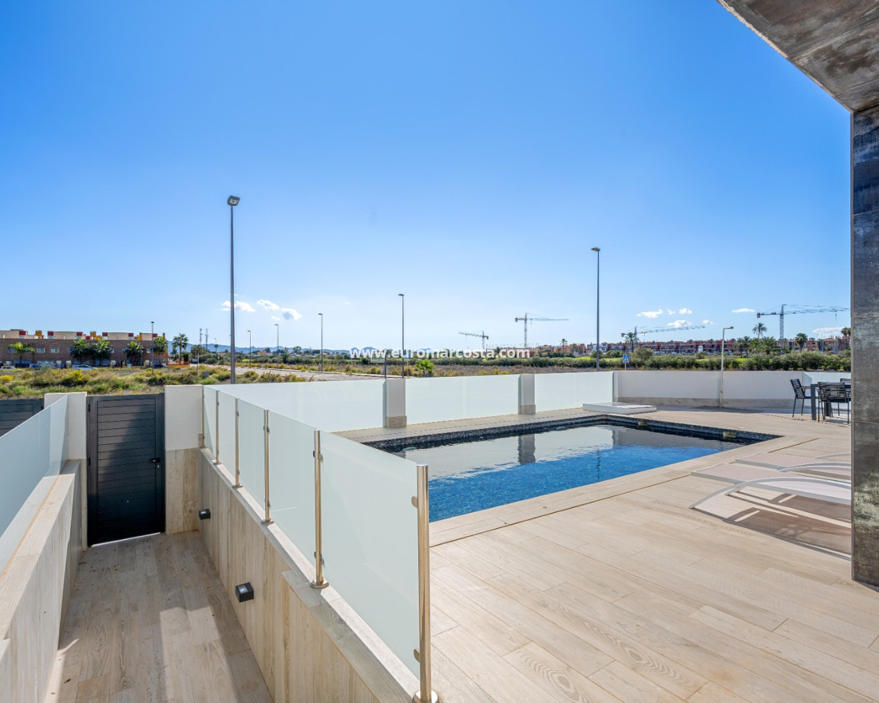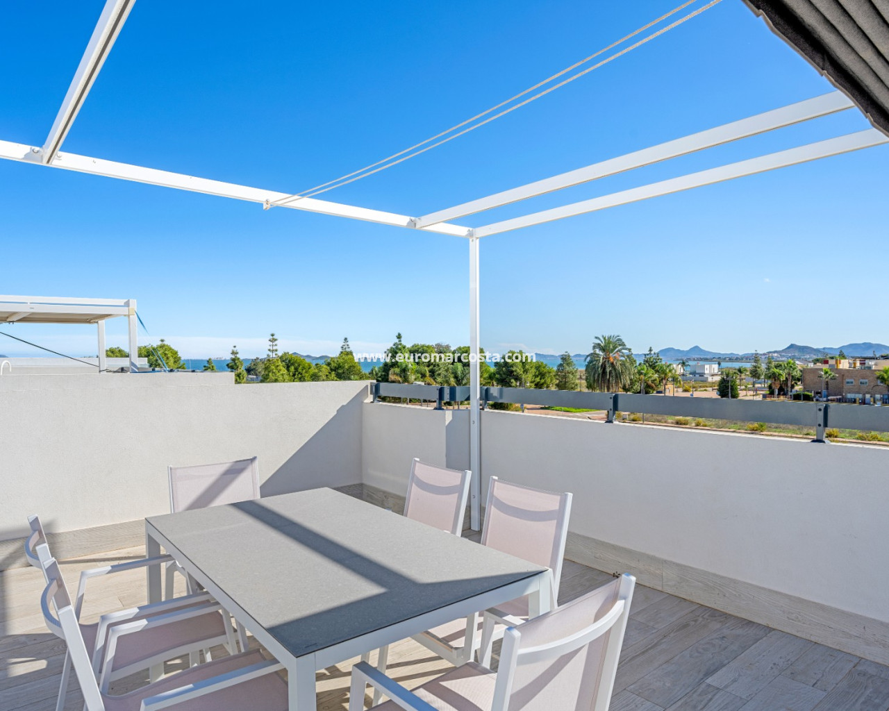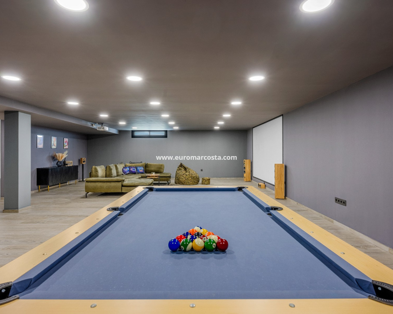 Discover this stunning modern 4-bedroom, 3.5-bathroom villa perfectly situated between Serena Golf and the shimmering coast of the Mar Menor. Combining style, comfort, and functionality, this fully furnished property offers the ideal balance between luxury living and coastal tranquility. With 192 sqm of usable space, the villa features a bright and airy open-plan living area that seamlessly connects to the outdoor terrace and pool. Its southeast orientation ensures natural light throughout the day, highlighting the elegant modern finishes and tasteful décor. The top-level solarium (83 sqm) provides a spectacular space for relaxation or entertaining, offering panoramic views of the golf course and the surrounding landscape. The huge basement is designed for leisure and convenience, boasting a cinema room, pool table area, and garage, along with an additional bedroom that comfortably accommodates up to four people — perfect for guests or family gatherings. Outside, enjoy a private swimming pool, dining area, and a green zone, ideal for soaking up the Mediterranean sun or enjoying peaceful evenings. Nestled in a quiet area with beautiful views, this villa offers privacy while being just minutes from golf, beaches, restaurants, and all local amenities. Key Features: 4 Bedrooms, 3.5 Bathrooms 192 sqm built + 83 sqm rooftop solarium Fully furnished, move-in ready Private pool and landscaped outdoor area Spacious basement with cinema, pool table, and garage Southeast orientation for optimal sunlight Peaceful location between Serena Golf & Mar Menor This villa is the perfect home for those seeking a modern Mediterranean lifestyle with a touch of luxury and relaxation.
