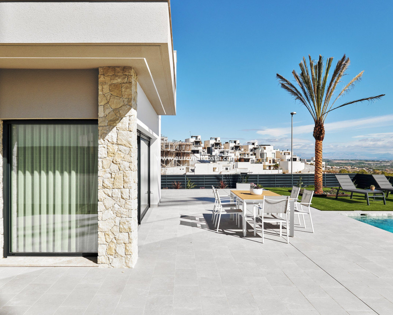 The exterior design of these detached homes in San Miguel de Salinas is intended to enjoy the Mediterranean climate. Each property features a private pool, perfect for cooling off during warm summer days. Additionally, the terraces offer an ideal space for outdoor relaxation or al fresco dining with sea views. The option of a solarium allows residents to make the most of the sun year-round, creating an additional space for leisure and relaxation.