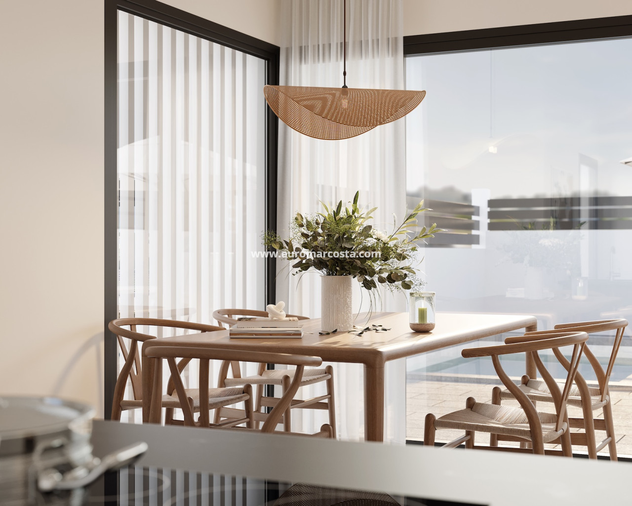 The exteriors of these homes in Torrevieja are designed to complement the Mediterranean lifestyle. Each property features a terrace, ideal for enjoying the region's sunny climate. Additionally, ground floor homes offer direct access to garden areas, providing extra space for outdoor leisure. The penthouses, on the other hand, include a private solarium, perfect for sunbathing in complete privacy. The proximity to the sea, just one kilometer away, allows for coastal walks and water activities. The integration of pergolas in the exterior design adds a touch of elegance and functionality, providing shade and a cozy space to relax.