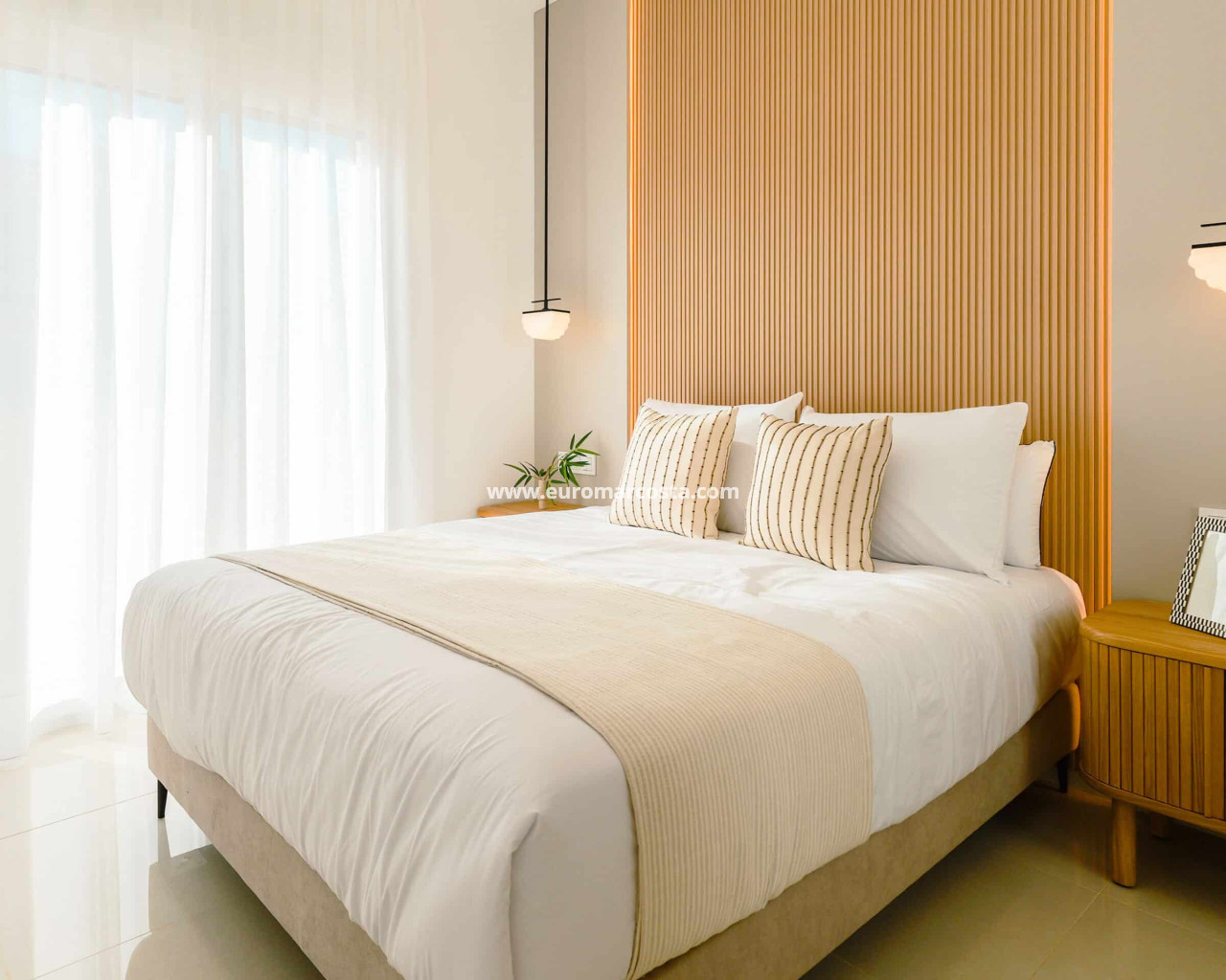 The interior of the bungalows is designed with attention to detail, incorporating modern and practical features. Porcelain stoneware floors provide an elegant and durable finish, while electric blinds and integrated appliances make daily life easier. Built-in wardrobes offer efficient storage, and the jacuzzi adds a touch of luxury and relaxation. With a layout that includes two bedrooms and two bathrooms, each space is optimized for comfort and privacy.