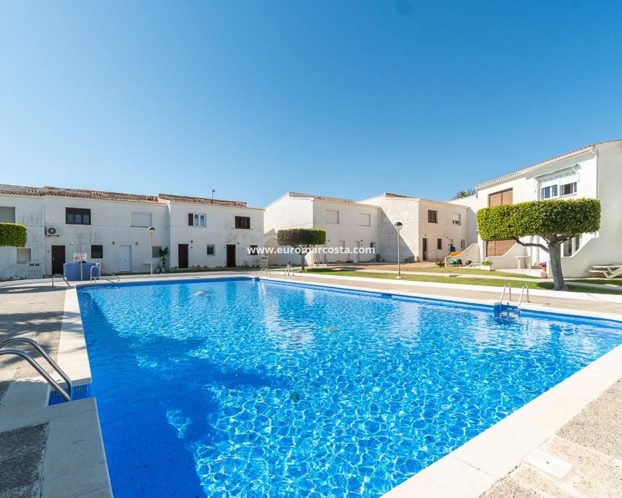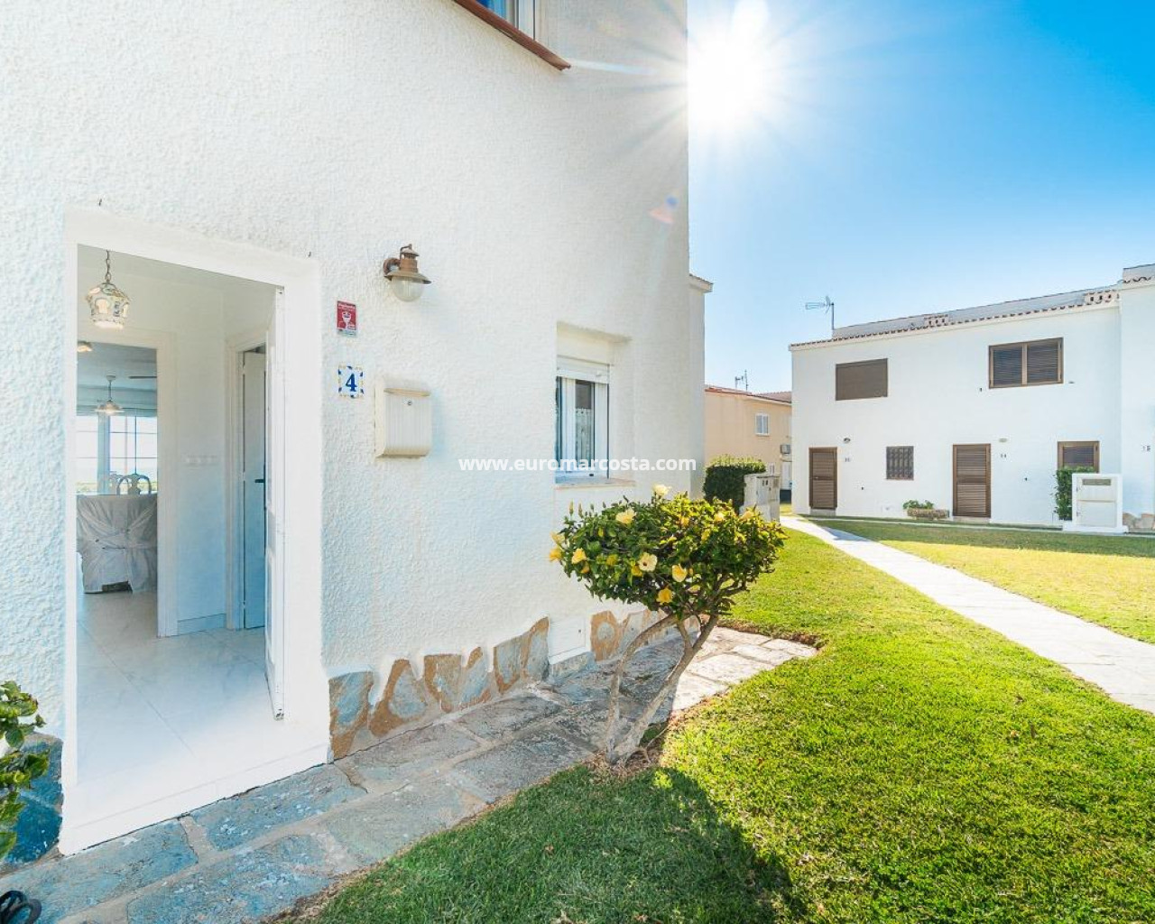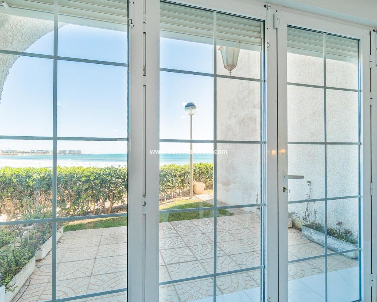Discover a unique gem on the seafront in the prestigious area of Playa Flamenca, where properties rarely come onto the market due to its privileged cliffside location.. . This charming townhouse, with 90 m2 built, offers an unparalleled Mediterranean lifestyle. On the ground floor, you will find a spacious living room filled with natural light, featuring a large front window with direct access to the garden, where you can enjoy open views and the soothing sound of the sea. The kitchen is independent, practical, and perfectly suited for everyday living. At the entrance, there is also a cozy private garden that adds a welcoming touch.. . Upstairs, there are two spacious double bedrooms. The master bedroom is truly exceptional: imagine waking up and enjoying sea views directly from your bed. This floor also includes a fully equipped bathroom.. . The property is part of an exclusive residential complex with a communal swimming pool, perfect for enjoying the Mediterranean climate all year round. In this highly sought-after area, where properties are rarely available, this home represents a unique opportunity both as a permanent residence or an investment.. . Living here means embracing a seafront lifestyle in one of the most desirable locations in Orihuela Costa.. . A truly exceptional property where the sea becomes part of your home.. . Price: €390,000. Taxes and purchase costs not included (according to applicable regulations). A detailed breakdown of additional costs will be provided prior to reservation.