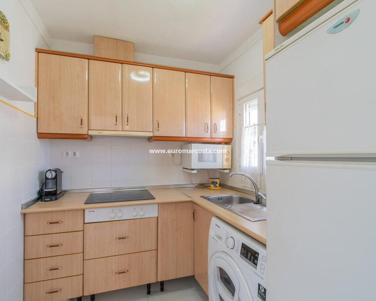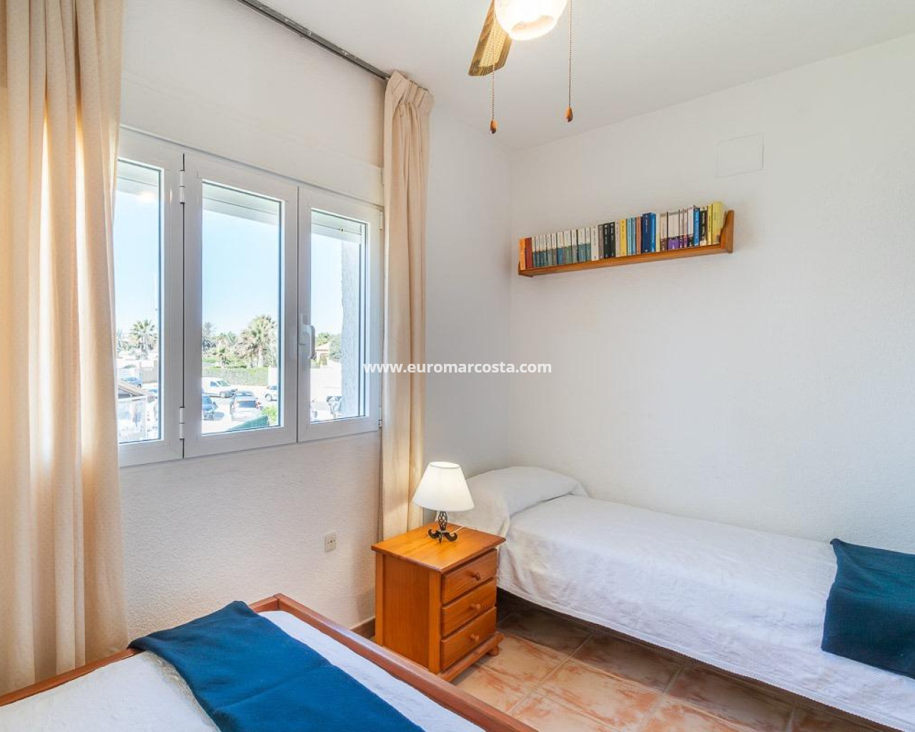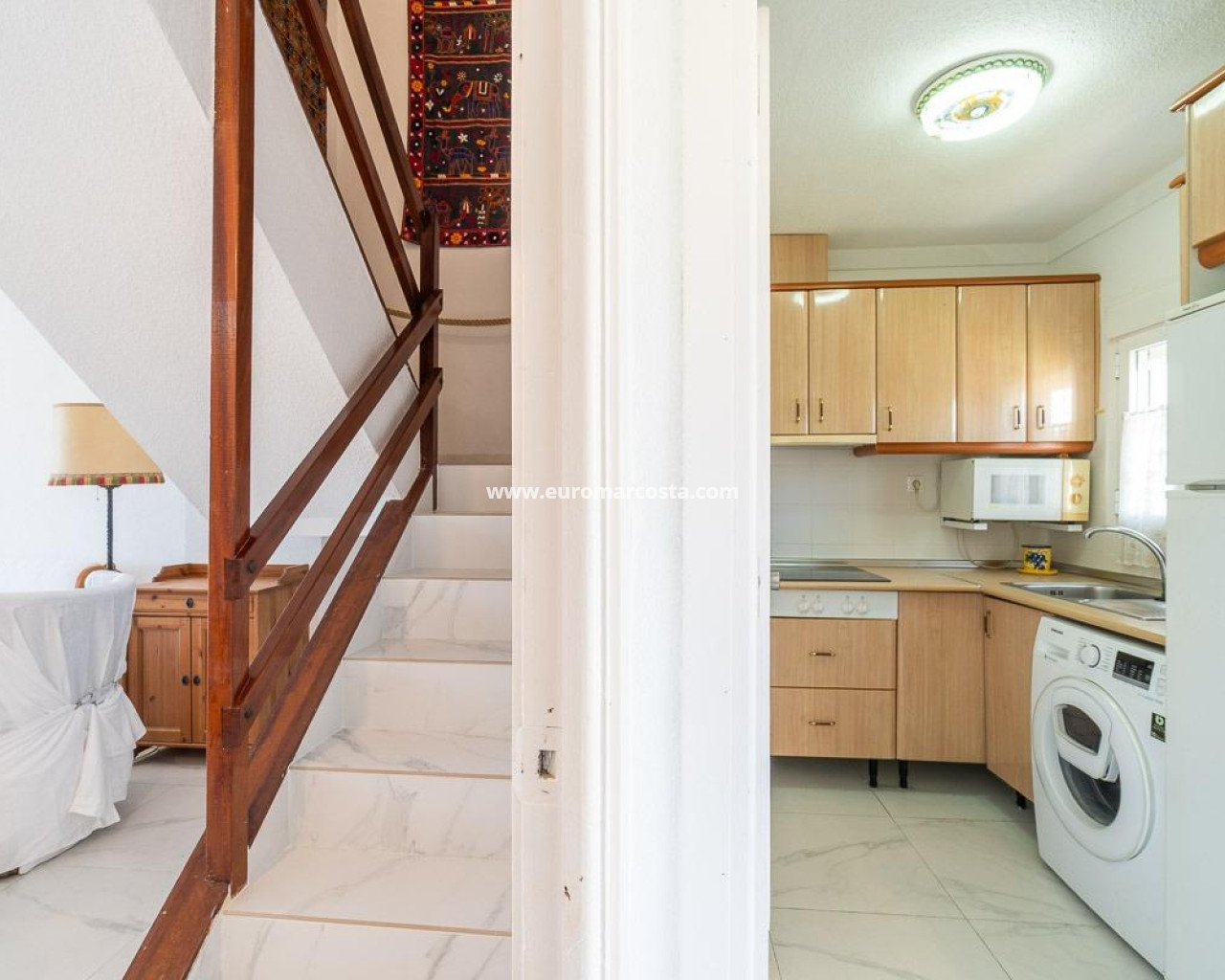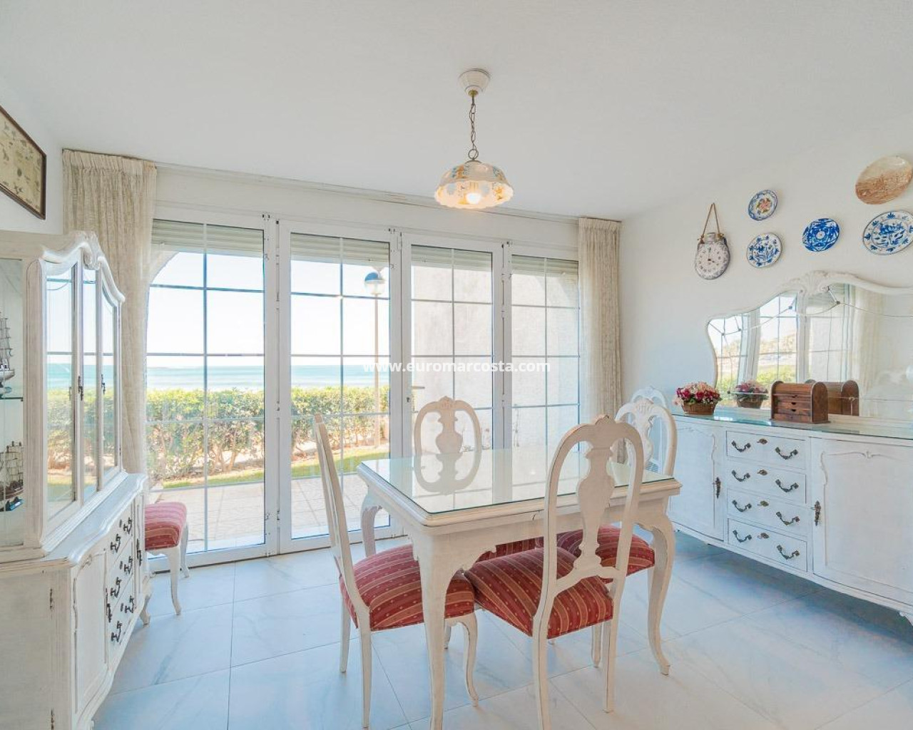 Discover a unique gem on the seafront in the prestigious area of Playa Flamenca, where properties rarely come onto the market due to its privileged cliffside location.. . This charming townhouse, with 90 m2 built, offers an unparalleled Mediterranean lifestyle. On the ground floor, you will find a spacious living room filled with natural light, featuring a large front window with direct access to the garden, where you can enjoy open views and the soothing sound of the sea. The kitchen is independent, practical, and perfectly suited for everyday living. At the entrance, there is also a cozy private garden that adds a welcoming touch.. . Upstairs, there are two spacious double bedrooms. The master bedroom is truly exceptional: imagine waking up and enjoying sea views directly from your bed. This floor also includes a fully equipped bathroom.. . The property is part of an exclusive residential complex with a communal swimming pool, perfect for enjoying the Mediterranean climate all year round. In this highly sought-after area, where properties are rarely available, this home represents a unique opportunity both as a permanent residence or an investment.. . Living here means embracing a seafront lifestyle in one of the most desirable locations in Orihuela Costa.. . A truly exceptional property where the sea becomes part of your home.. . Price: €390,000. Taxes and purchase costs not included (according to applicable regulations). A detailed breakdown of additional costs will be provided prior to reservation.