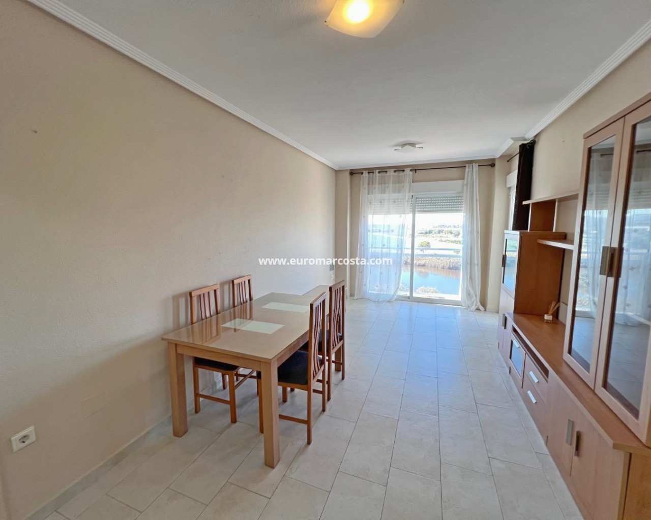 Euromar Costa vende en la zona del puerto deportivo de Guardamar del segura, amplio apartamento totalmente exterior, con enorme terraza con vistas al rio segura. La vivienda se vende equipada con muebles y electrodomésticos, Tiene armarios empotrados, cocina abierta al salón e incluye en el precio plaza de aparcamiento en superficie y trastero en sótano. El recinto tiene zonas comunitarias con piscina, jardines y zonas de juegos infantiles.