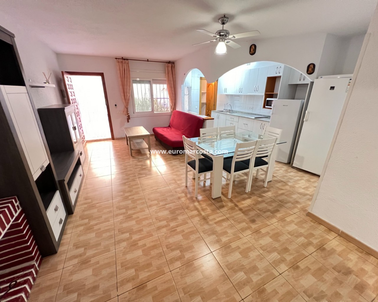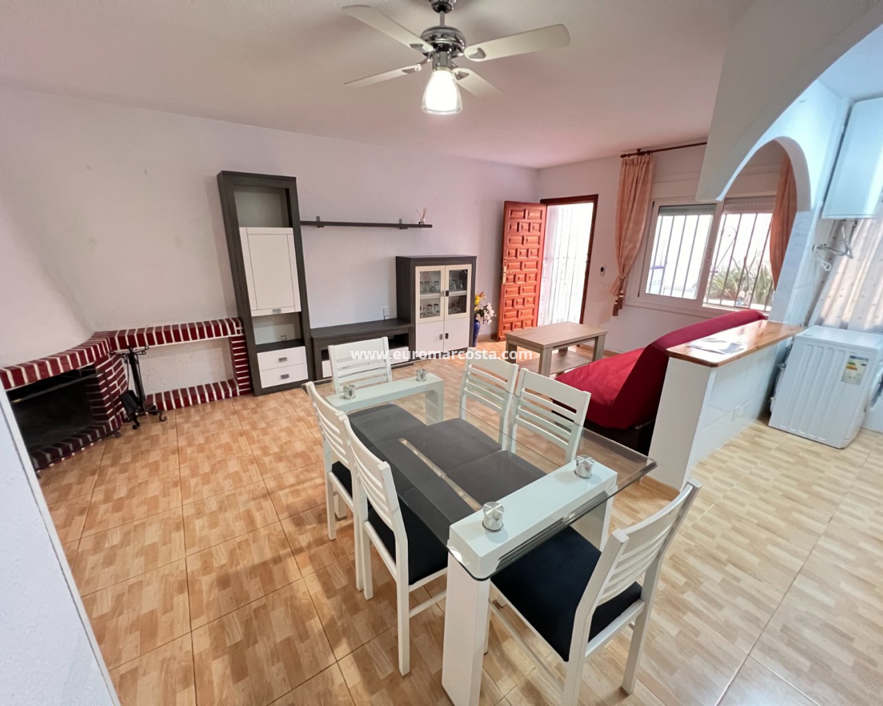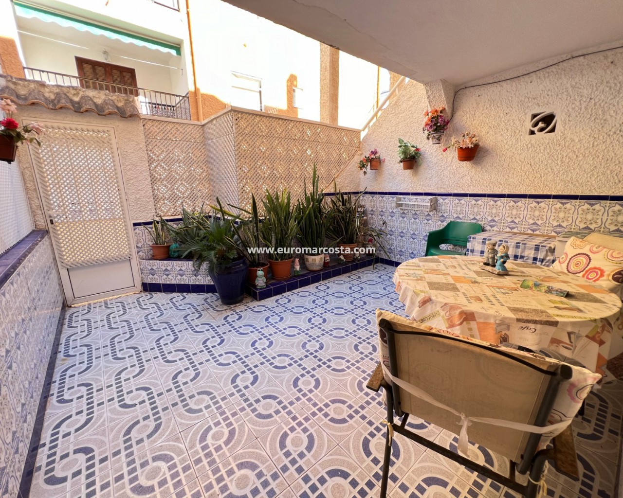 La vivienda está equipada con muebles y electrodomésticos para que puedas entrar a vivir de inmediato. Además, tiene una gran terraza frontal y un patio para disfrutar de la brisa mediterránea y el sol durante todo el año.
