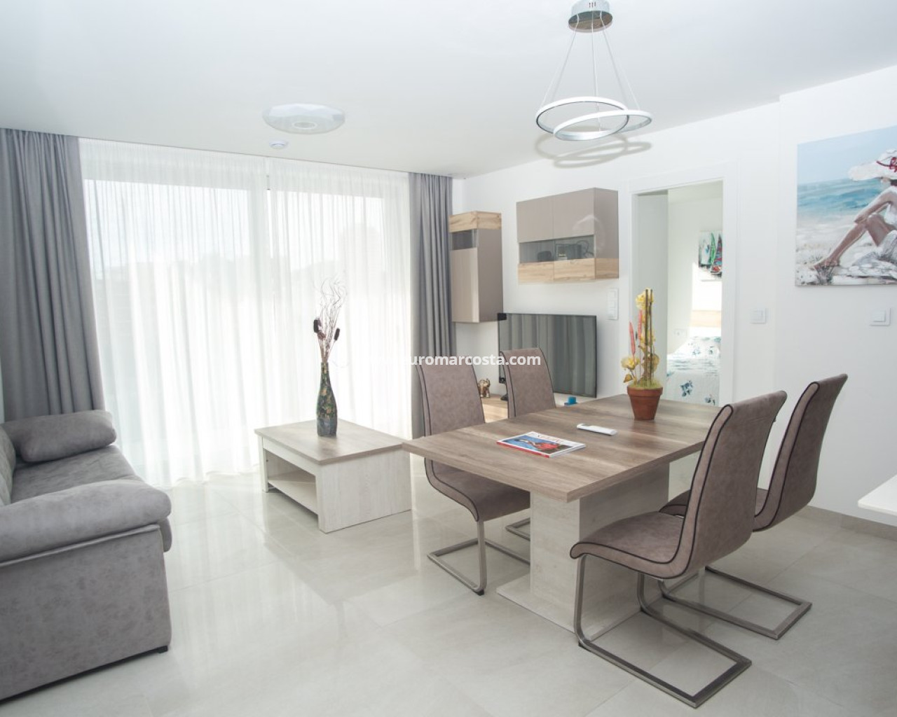 El diseño interior de los apartamentos y áticos en La Cala se centra en la comodidad y el estilo contemporáneo. Con una distribución que incluye dos dormitorios y dos baños, cada espacio está optimizado para ofrecer funcionalidad y confort. Las cocinas están equipadas con electrodomésticos modernos, facilitando el día a día de los residentes. El aire acondicionado garantiza un ambiente agradable en todas las estaciones, mientras que los armarios empotrados proporcionan un almacenamiento práctico y ordenado. El uso de gres porcelánico en los suelos añade un toque de sofisticación y es fácil de mantener, asegurando que cada hogar sea tanto estéticamente agradable como práctico.