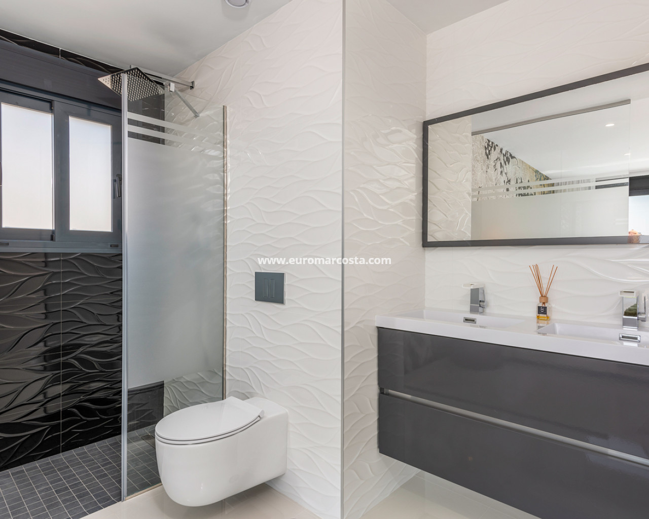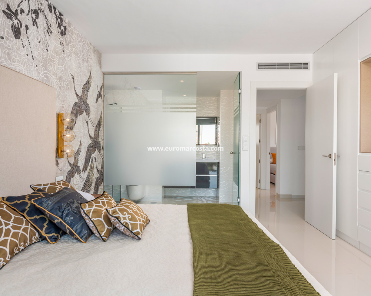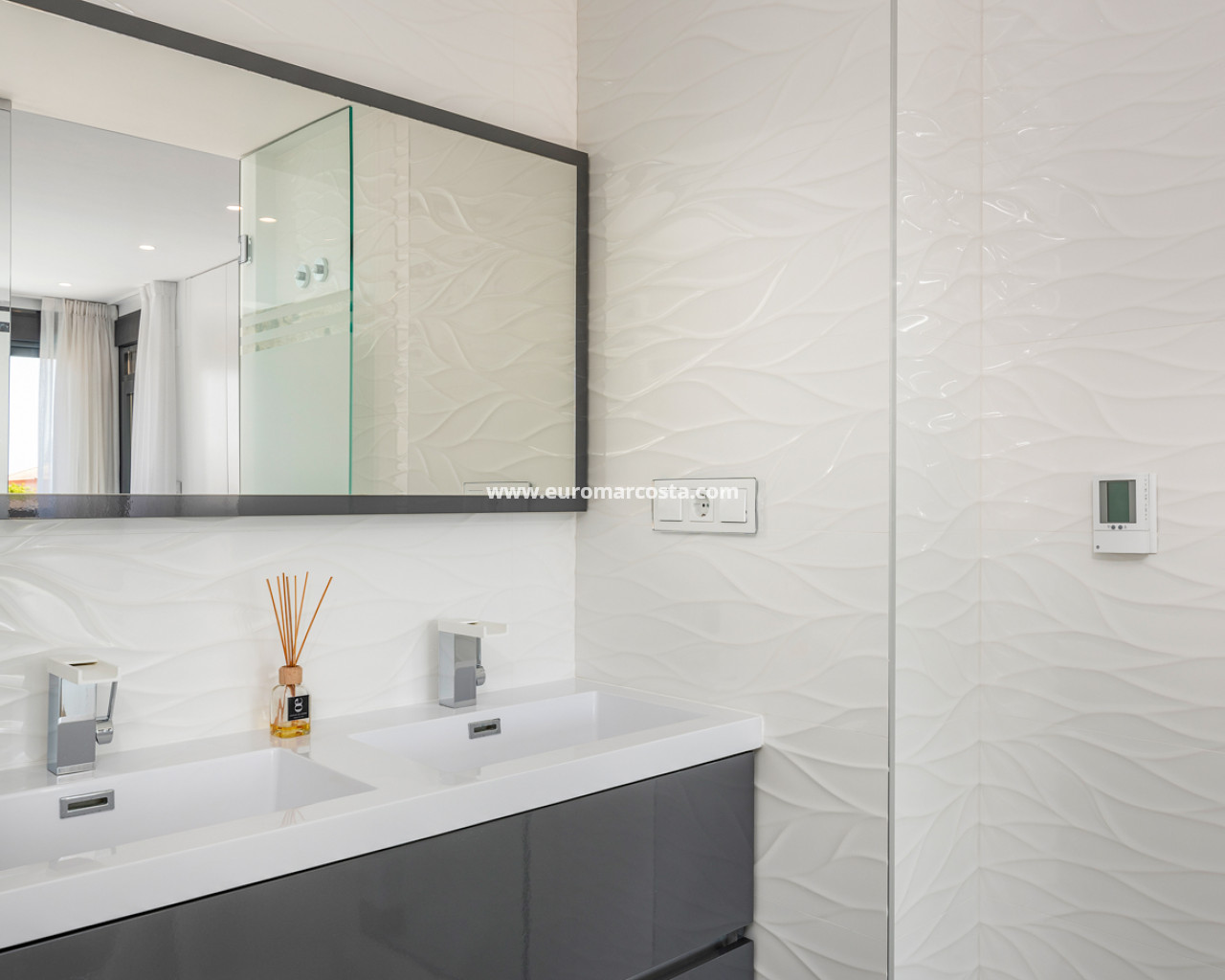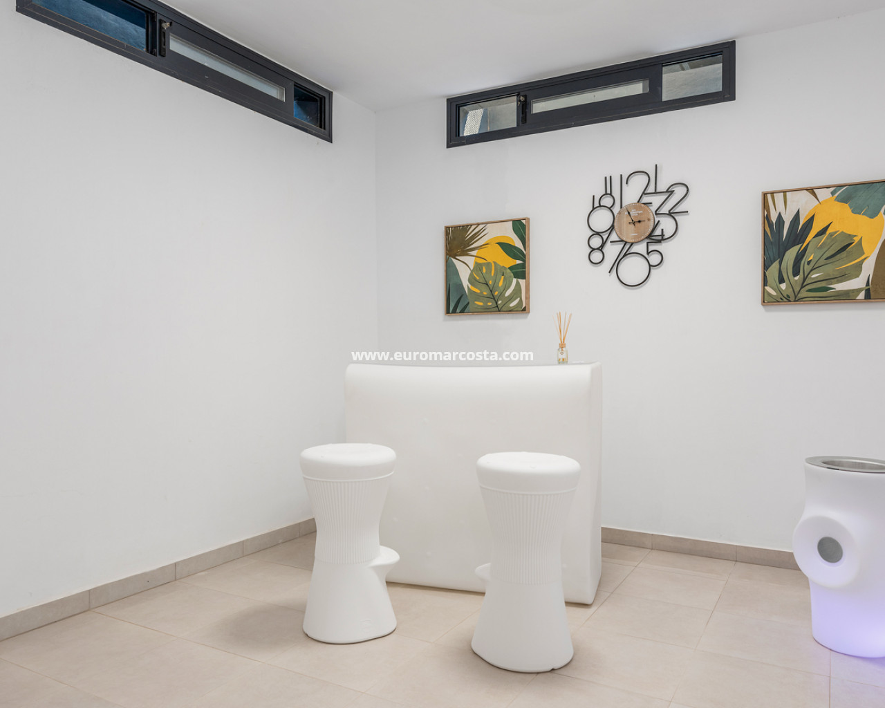 Los interiores de esta lujosa vivienda en la Manga de Murcia deslumbran con opulencia y estilo. Los espaciosos salones están decorados con muebles de diseño y detalles artísticos, mientras que las amplias ventanas ofrecen vistas panorámicas al mar. La cocina gourmet cuenta acabados de alta gama. Las habitaciones son elegantes y acogedoras, con baños de mármol y vestidores. Cada rincón de esta residencia irradia sofisticación y confort.