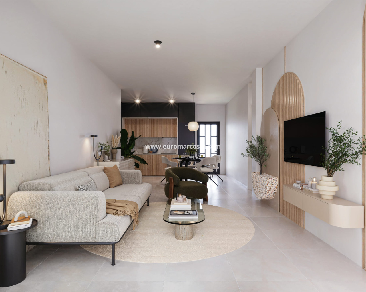El diseño interior de las viviendas en este residencial de San Miguel de Salinas está pensado para ofrecer comodidad y funcionalidad. Las opciones de distribución incluyen viviendas con 2 o 3 dormitorios y 2 baños, adaptándose a diferentes necesidades familiares. Los interiores cuentan con suelos de gres porcelánico, que no solo son estéticamente agradables, sino también duraderos y fáciles de mantener. Los armarios empotrados proporcionan un espacio de almacenamiento eficiente, mientras que la preinstalación de aire acondicionado asegura que el clima interior sea siempre confortable. Cada detalle ha sido cuidadosamente considerado para ofrecer un hogar acogedor y moderno.
