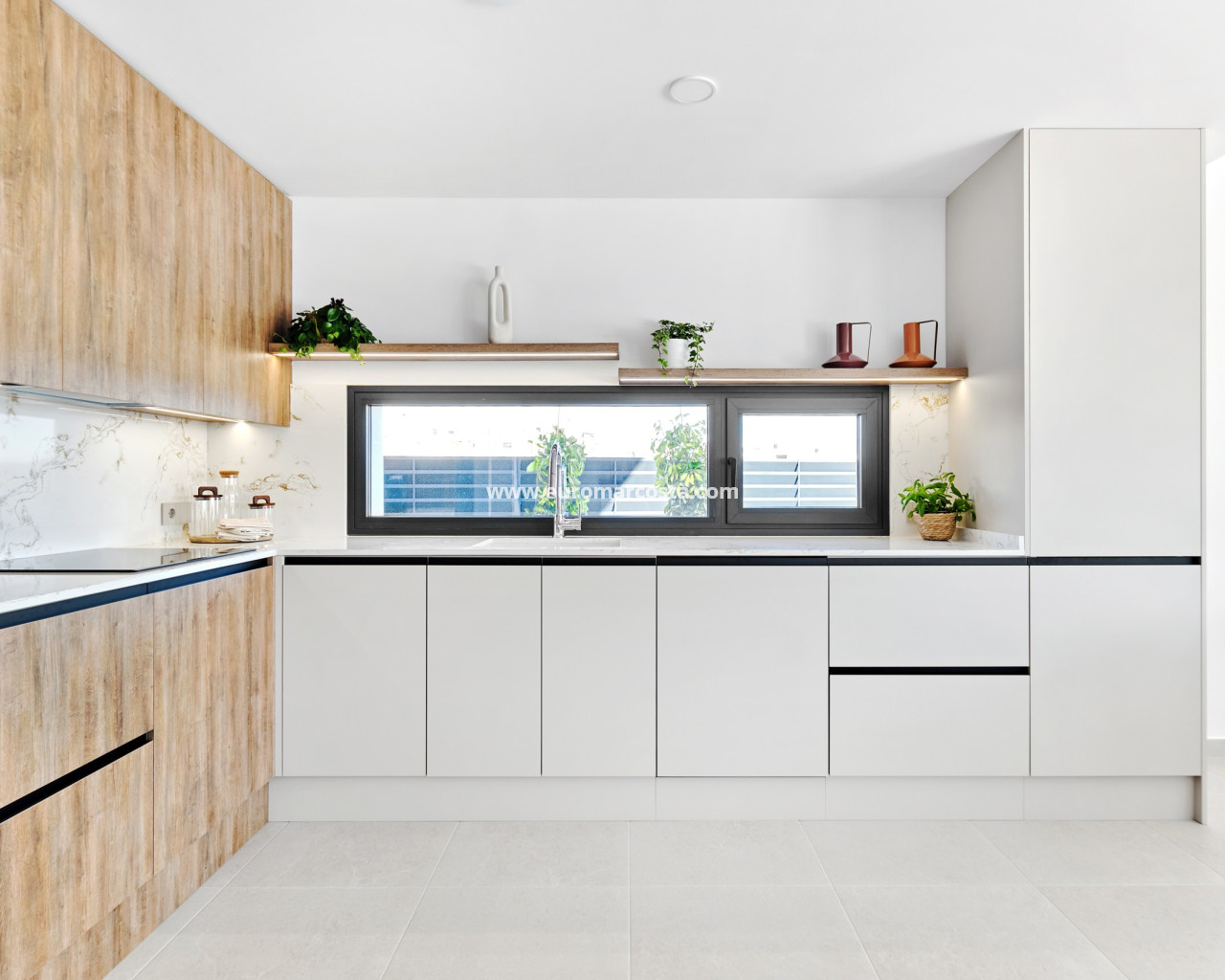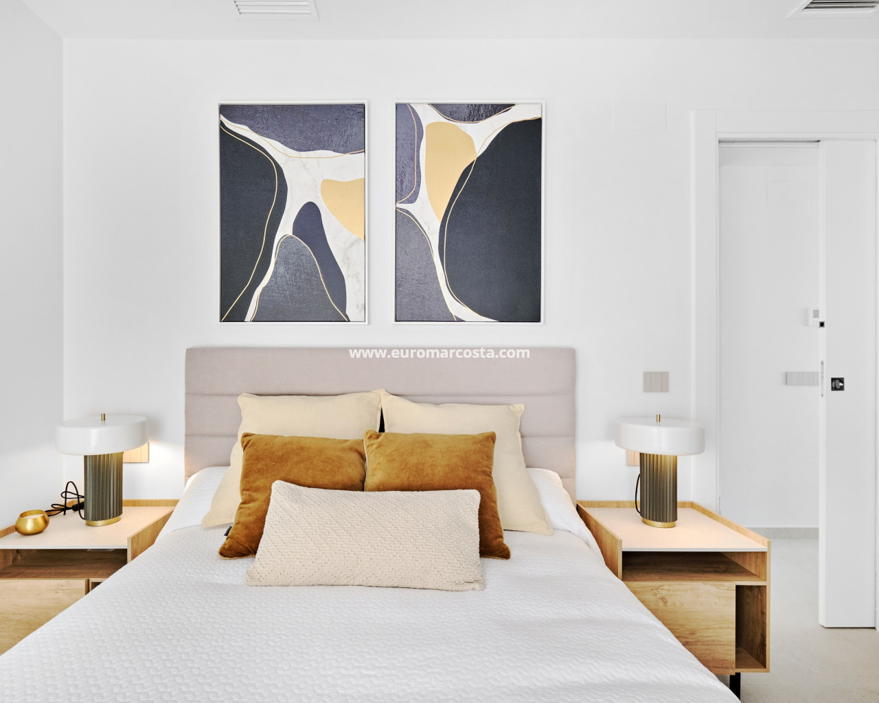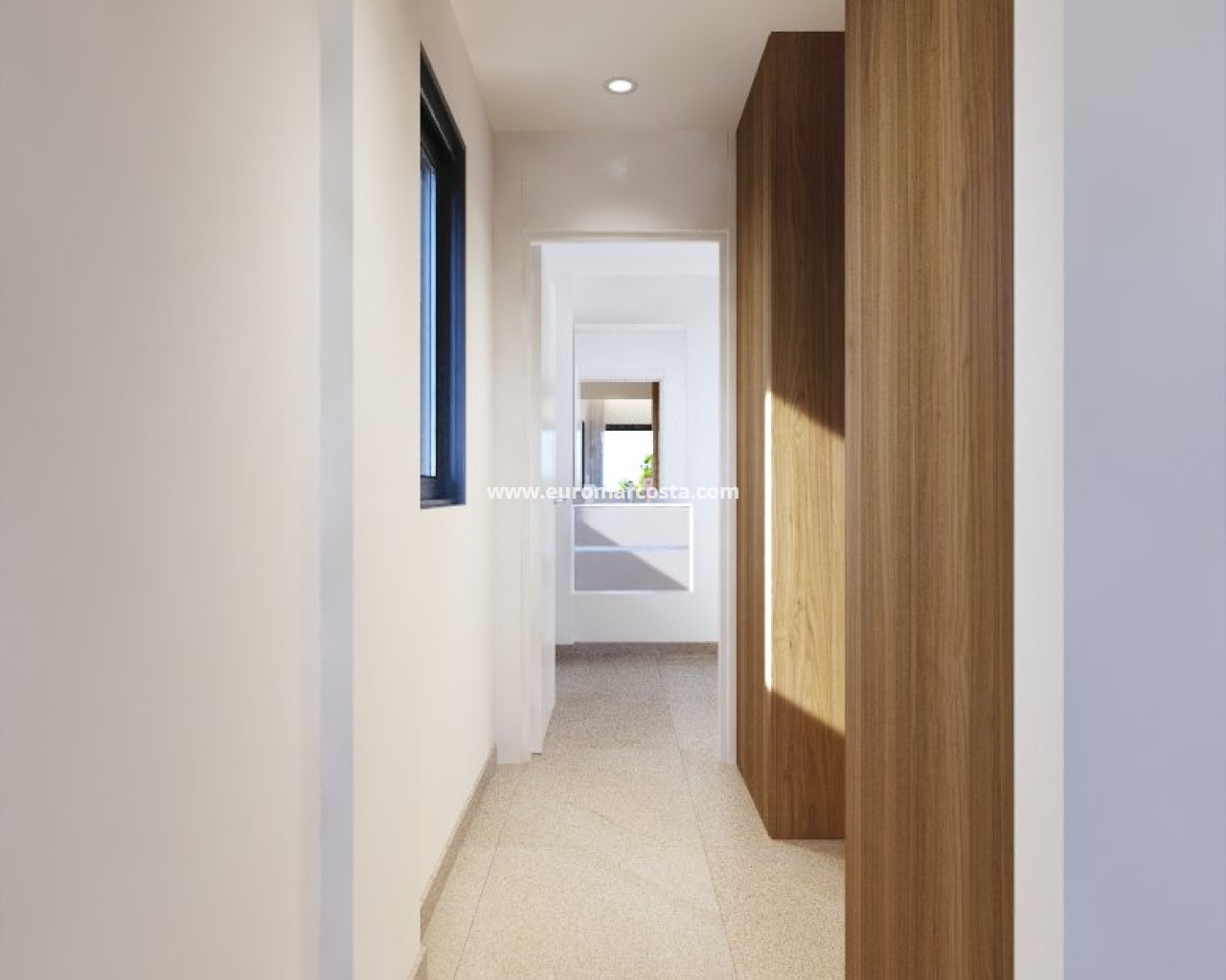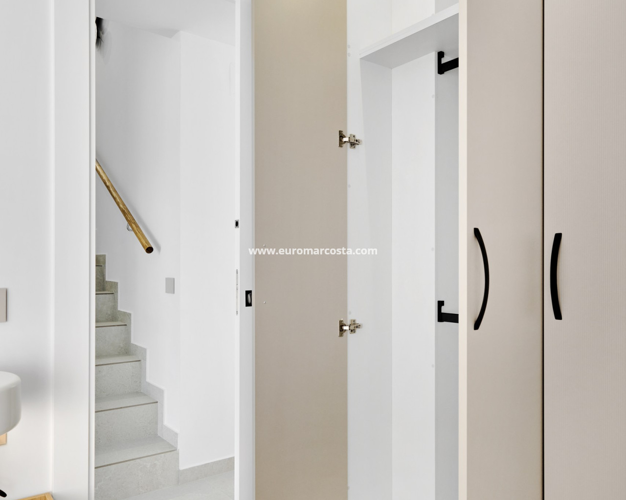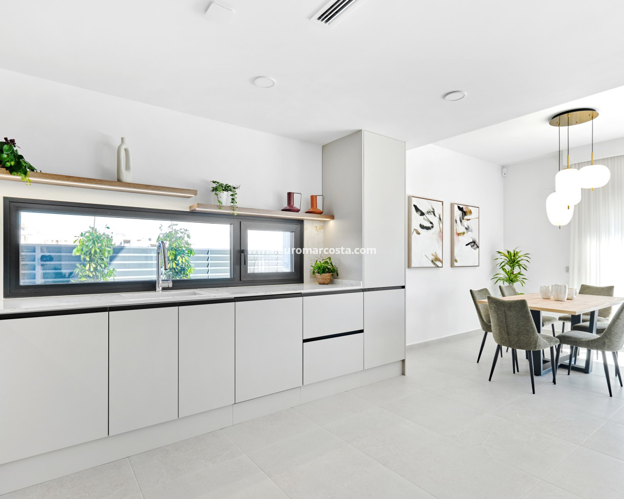El interior de estas viviendas en San Miguel de Salinas está diseñado para ofrecer el máximo confort y funcionalidad. Las propiedades cuentan con tres dormitorios y dos baños, proporcionando un espacio amplio y cómodo para familias o parejas. Los interiores están equipados con aire acondicionado y preinstalación de aire acondicionado, asegurando un ambiente agradable durante todo el año. Las persianas eléctricas y los armarios empotrados añaden un toque de modernidad y practicidad. La cocina está completamente equipada con electrodomésticos, y las viviendas se entregan amuebladas, listas para entrar a vivir. El suelo de cerámica añade un toque elegante y fácil de mantener a los espacios interiores.