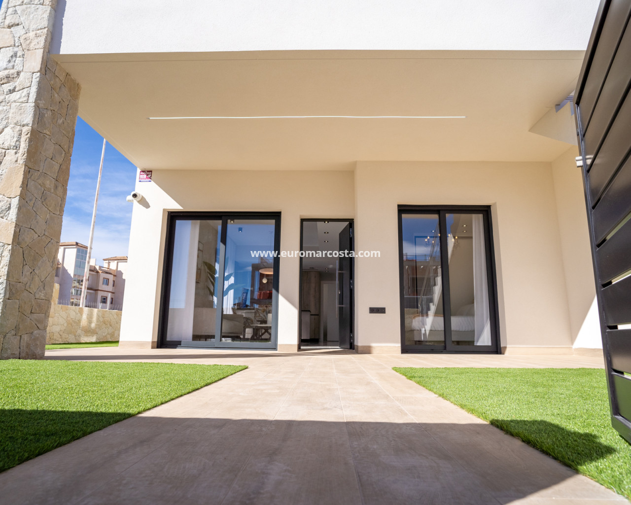 Los exteriores de estas viviendas han sido cuidadosamente diseñados para maximizar el disfrute del clima mediterráneo. Cada propiedad cuenta con un jardín privado, perfecto para relajarse o para actividades al aire libre. Además, las terrazas ofrecen un espacio adicional para disfrutar de las vistas y del entorno. Para aquellos que buscan un espacio extra al aire libre, el solárium es una opción ideal, proporcionando un lugar privado para tomar el sol o disfrutar de las noches estrelladas. Las pérgolas añaden un toque de elegancia y funcionalidad, proporcionando sombra y estilo a los espacios exteriores.