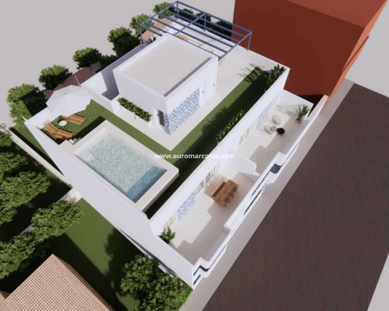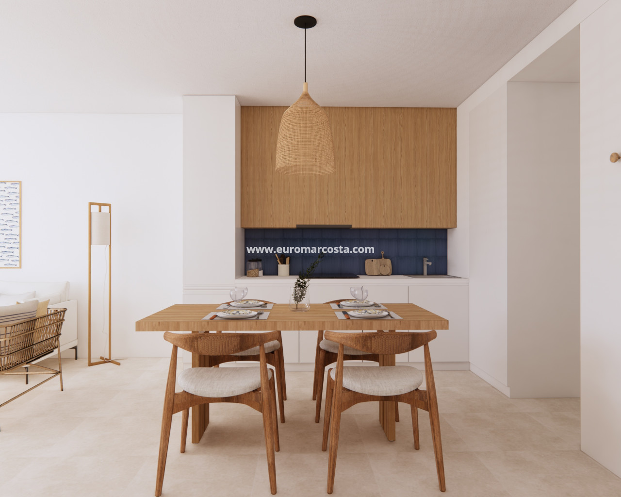 Los interiores de los apartamentos y plantas bajas están equipados con características modernas que garantizan confort y funcionalidad. Los suelos de baldosas aportan un toque elegante y son fáciles de mantener. Todas las propiedades incluyen armarios empotrados, optimizando el espacio de almacenamiento. La preinstalación de aire acondicionado asegura que los residentes puedan disfrutar de un ambiente fresco durante los meses más cálidos. Además, las viviendas están equipadas con electrodomésticos, facilitando la vida diaria desde el primer día.