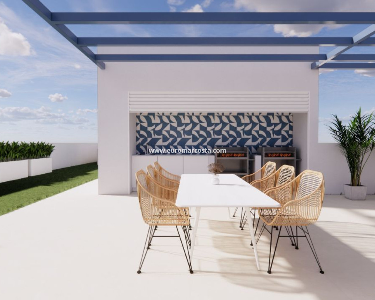 Los exteriores de estas propiedades están pensados para maximizar el disfrute del entorno natural. Cada unidad cuenta con una terraza, perfecta para relajarse al aire libre y disfrutar de las vistas. La cercanía al mar, a solo 210 metros, permite un acceso rápido y cómodo a la playa, ideal para quienes valoran la vida costera. La arquitectura y el diseño exterior se integran armoniosamente con el paisaje, ofreciendo un ambiente sereno y acogedor.