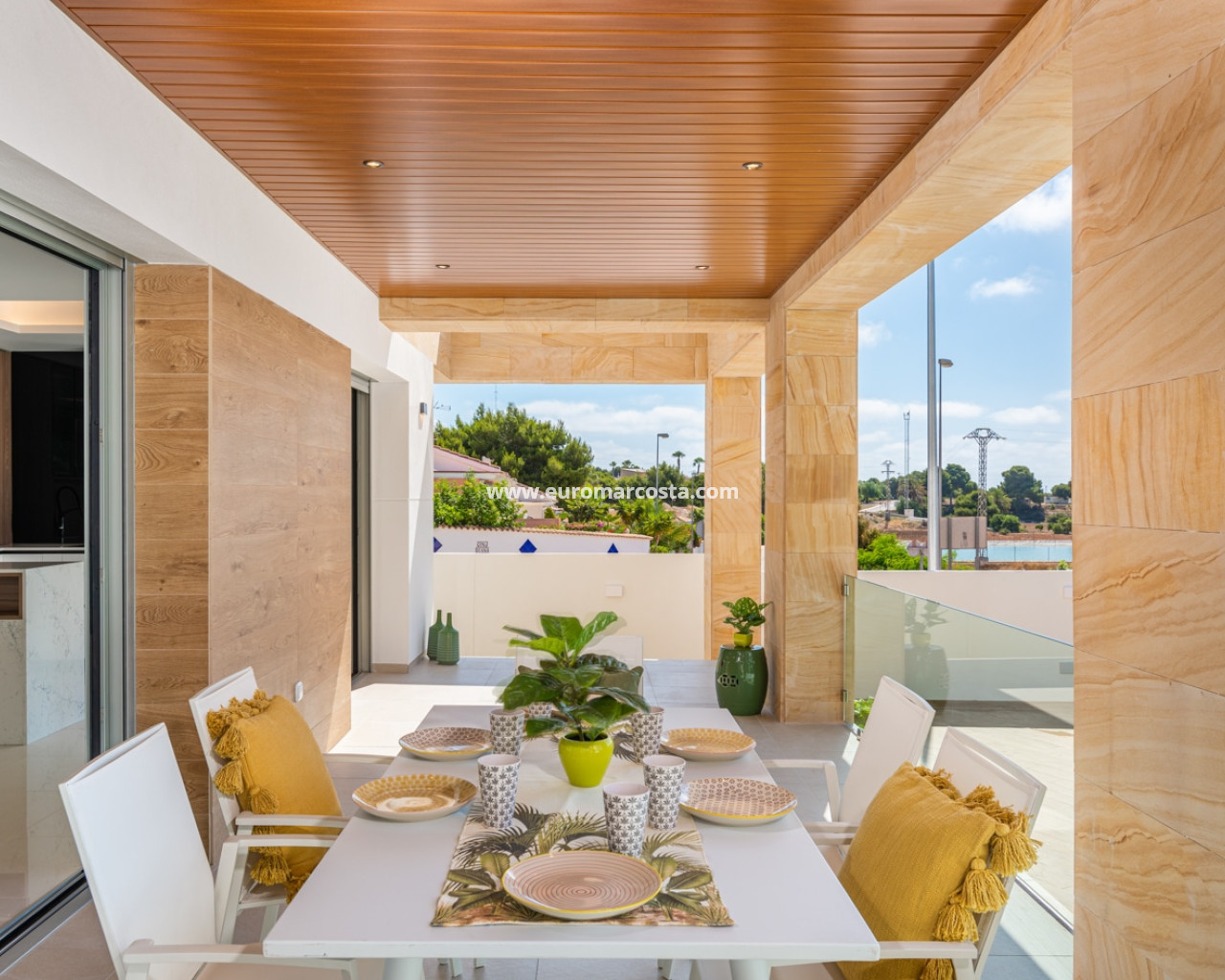 El exterior de estas viviendas es un verdadero oasis de relajación. Cada propiedad cuenta con un jardín privado, perfecto para disfrutar del clima mediterráneo. La presencia de una piscina privada añade un toque de lujo, permitiendo refrescarse en los días más cálidos. Además, las terrazas y el solárium ofrecen espacios adicionales para el ocio al aire libre, ideales para reuniones familiares o simplemente para disfrutar de un momento de tranquilidad. La pérgola proporciona sombra y un lugar acogedor para descansar durante las horas de sol intenso.