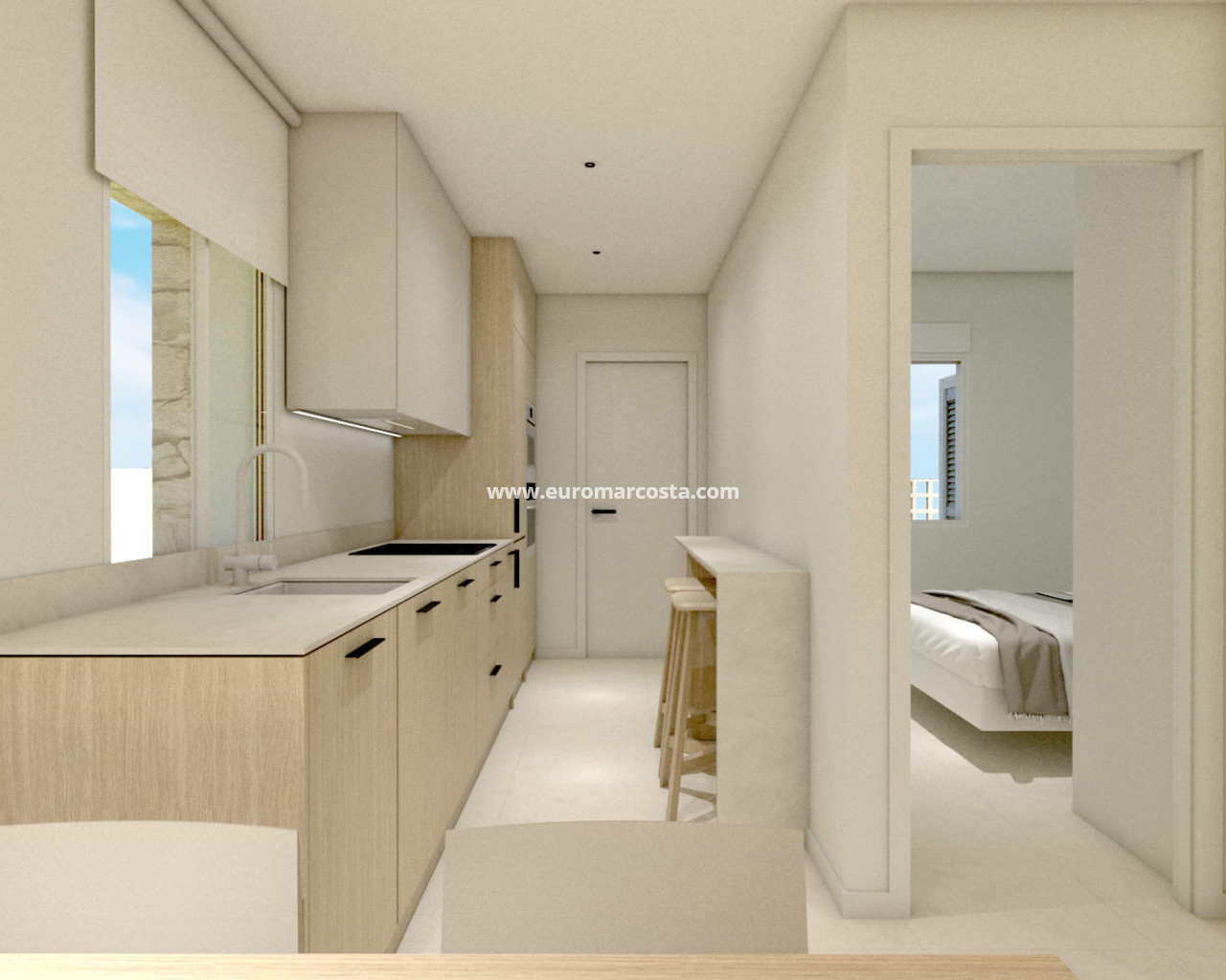 El interior de estas viviendas está equipado con características de alta calidad para asegurar el máximo confort. Las cocinas están completamente equipadas con electrodomésticos modernos, facilitando el día a día. Los armarios empotrados ofrecen un almacenamiento eficiente, mientras que la calefacción por suelo radiante garantiza una temperatura agradable durante todo el año. Además, la preinstalación de aire acondicionado permite una climatización personalizada según las preferencias de cada residente. Las opciones de distribución incluyen viviendas de 3 o 4 dormitorios y 2 o 3 baños, adaptándose a las necesidades de diferentes familias.