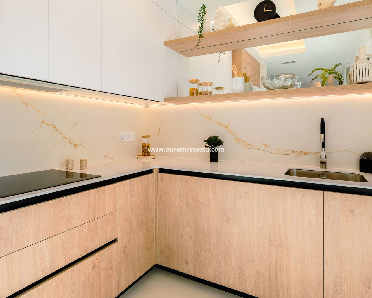 Los exteriores de estas viviendas han sido diseñados para maximizar el disfrute del clima mediterráneo. Cada propiedad cuenta con un jardín privado, perfecto para relajarse o para disfrutar de actividades al aire libre. La presencia de una piscina privada añade un toque de lujo, permitiendo refrescarse en los días más calurosos. Además, las viviendas disponen de una terraza y un solárium, ofreciendo múltiples espacios para descansar o socializar al aire libre. La inclusión de una pérgola proporciona sombra y estilo, creando un ambiente acogedor y elegante en el exterior.