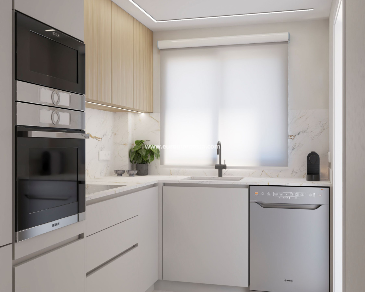 Los interiores de los apartamentos y plantas bajas en Badia de Xàbia están diseñados pensando en la comodidad y el estilo. Las viviendas ofrecen opciones de 2 o 3 dormitorios y 2 baños, adaptándose a diferentes necesidades familiares. Cada espacio está optimizado para ofrecer amplitud y luminosidad, con acabados modernos y funcionales. La inclusión de aire acondicionado y electrodomésticos garantiza un confort total durante todo el año. Los armarios empotrados proporcionan un almacenamiento eficiente, manteniendo los espacios ordenados y despejados. La opción de garaje añade un plus de conveniencia para los residentes.