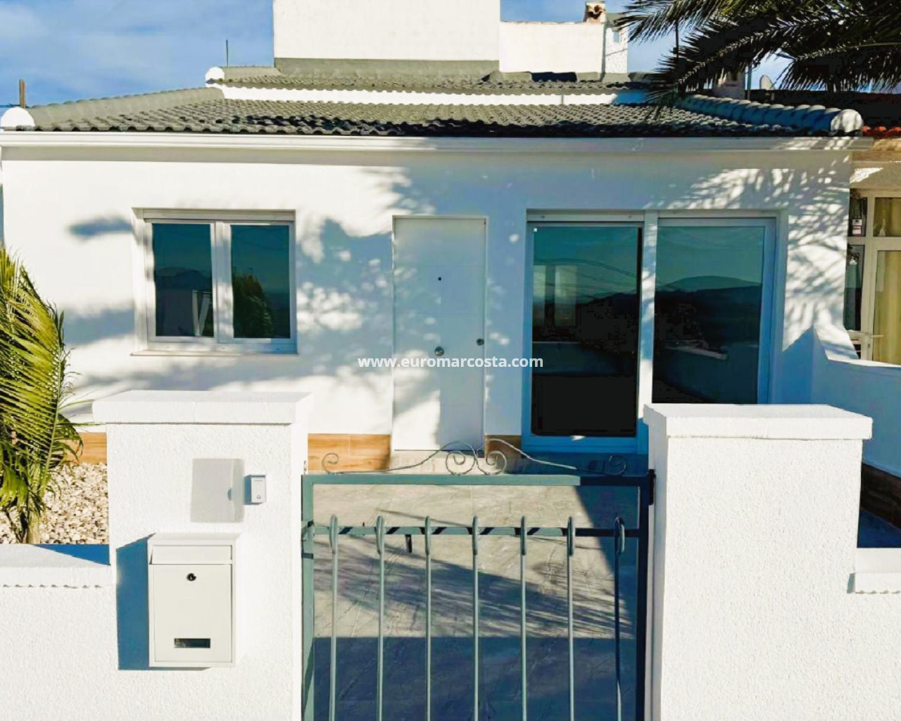En el interior, la casa cuenta con un luminoso y soleado salón con una elegante cocina americana, tres dormitorios y un baño moderno. Cada rincón ha sido renovado para brindar un aire mediterráneo fresco y moderno.
