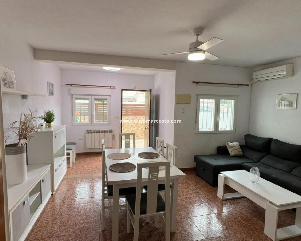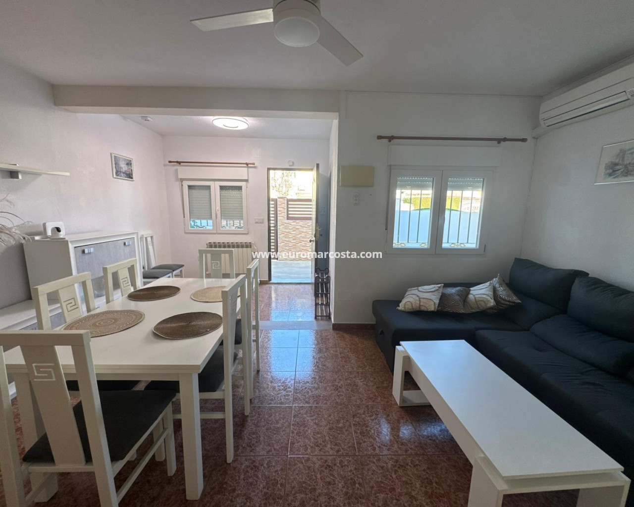 Descubre tu nuevo hogar en Torrevieja, en una zona residencial tranquila y bien conectada, perfecta tanto para vivir todo el año como para disfrutar de tus vacaciones en la costa. Este adosado semireformado combina comodidad, luz natural y el encanto del auténtico estilo de vida mediterráneo.En la parte superior, un agradable solárium privado ofrece vistas despejadas al lago, convirtiéndose en el lugar ideal para relajarte al final del día. Características principales de la vivienda 73 m² construidos distribuidos en dos plantas 2 habitaciones luminosas y bien ventiladas 2 baños completos y funcionales 18 m2 Terraza Solárium privado con vistas al lago Urbanización con piscina y zonas infantilesAdemás, su ubicación estratégica permite un acceso cómodo a los principales puntos de interés de la ciudad y se encuentra a aproximadamente 45 km del Aeropuerto de Alicante. En el entorno inmediato encontrarás restaurantes, bares, farmacias, centros comerciales, supermercadosUna oportunidad ideal para quienes buscan tranquilidad, servicios cercanos y una vivienda lista para disfrutar desde el primer día. Contacta ahora y ven a conocer tu próximo hogar en Torrevieja.