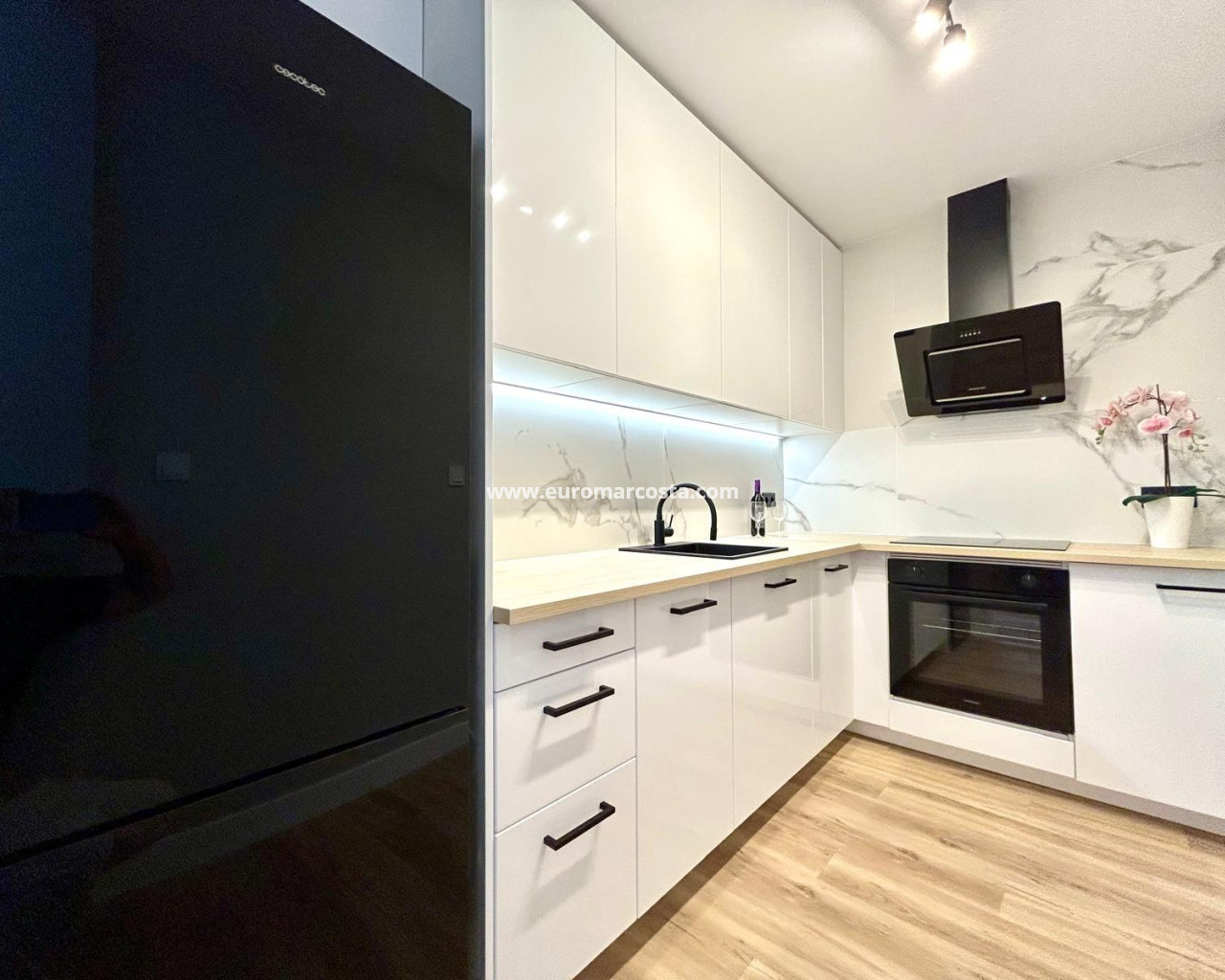 Completamente reformada casa adosada ubicada en la tranquila comunidad de Los Naranjos, en Los Altos. La vivienda ha sido completamente renovada y se encuentra en estado impecable, lista para entrar a vivir. Con la superficie construida de 83m2, consta de tres dormitorios y dos baños completos, salón -comedor, cocina independiente, porche delantero cubierto. La cocina equipada con todos los electrodomésticos modernos, con la zona de lavadero. La vivienda se distribuye en dos plantas y tiene un diseño funcional y moderno. Acceso a la vivienda a través de un jardín privado. En la planta superior se encuentran dos amplios dormitorios dobles, ambos con armarios, y un segundo baño completo con bañera. El dormitorio principal orientado al sur, lo que le proporciona una luz natural durante todo el día. Aire acondicionado instalado en cada estancia. Se vende completamente amueblada, con muebles de calidad y todo lo necesario para entrar a vivir (excepto efectos personales y elementos decorativos). Residencial ofrece una preciosa piscina comunitaria, y la vivienda se sitúa en una calle muy tranquila, con fácil aparcamiento y entorno agradable. A solo 400 metros esta el supermercado Consum, varios restaurantes, a 15 minutos andando del centro comercial Punta Marina. La Playa de Punta Prima esta a 2 km.