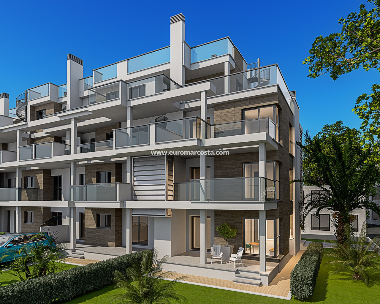 Los exteriores de estas viviendas han sido diseñados para maximizar el disfrute del clima mediterráneo. Cada propiedad cuenta con una terraza privada, perfecta para relajarse al aire libre y disfrutar de las vistas al mar cuando corresponda. Además, algunas tipologías incluyen un jardín privado, ofreciendo un espacio adicional para el ocio y la recreación. Los Áticos disponen de un solárium, ideal para quienes buscan un espacio exclusivo para tomar el sol o disfrutar de las vistas panorámicas. La cercanía al mar, a solo un kilómetro de distancia, permite que los residentes disfruten de paseos junto a la costa y de la brisa marina.