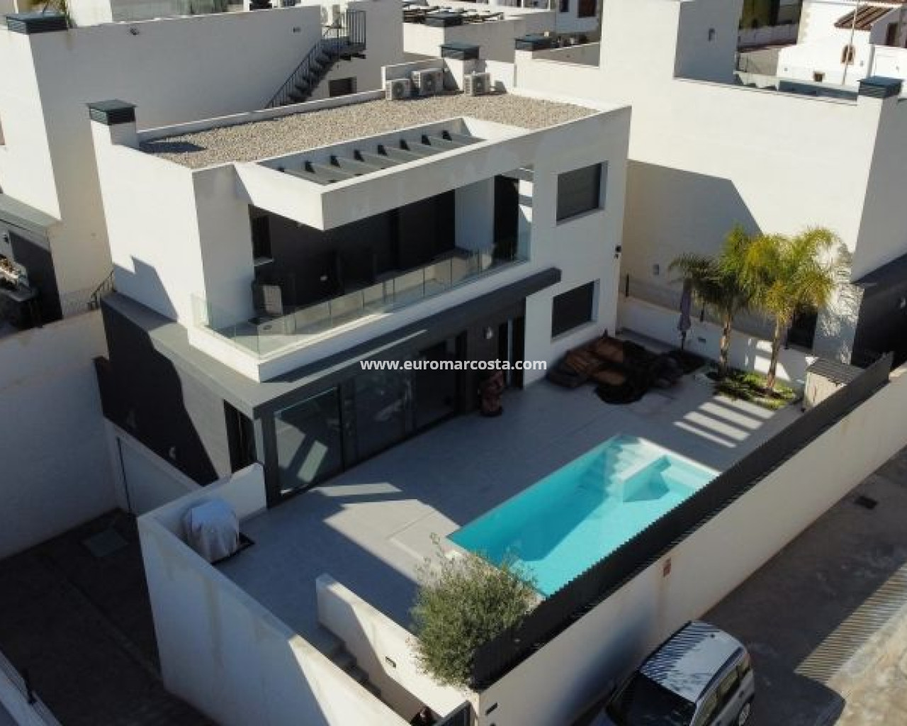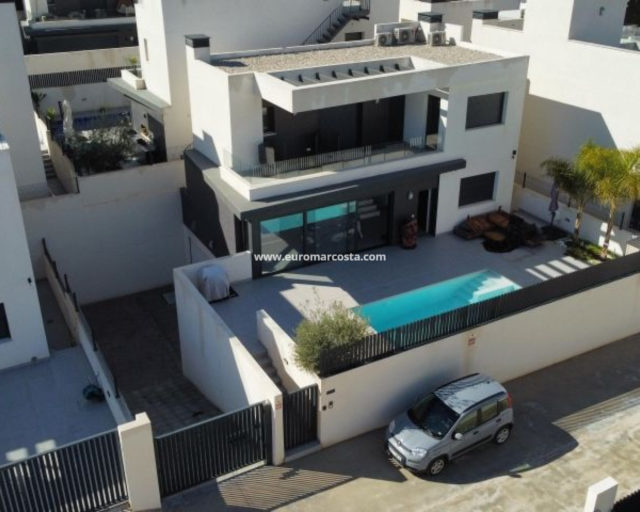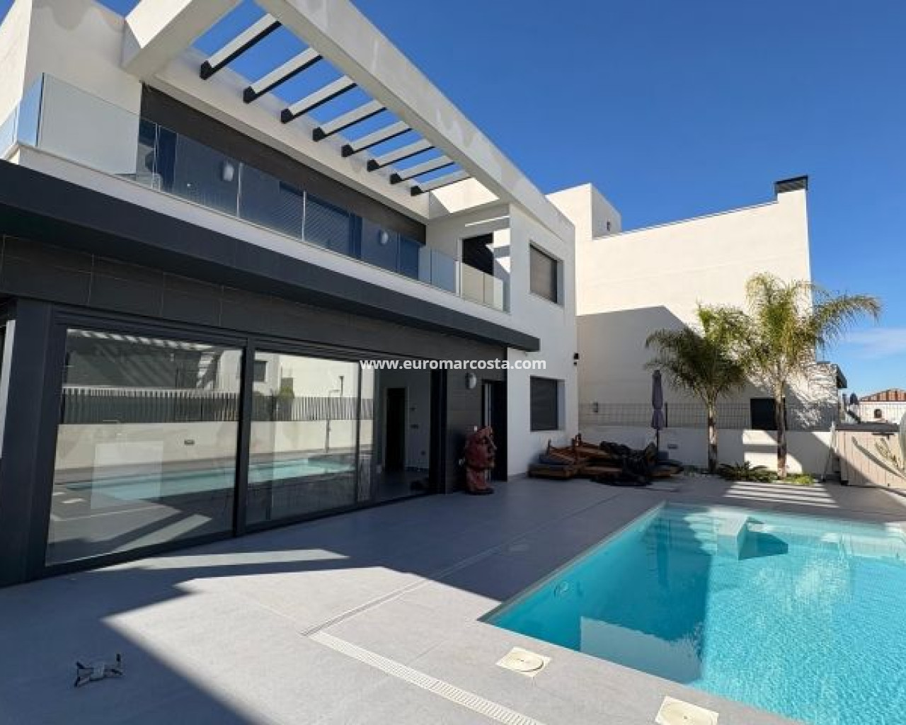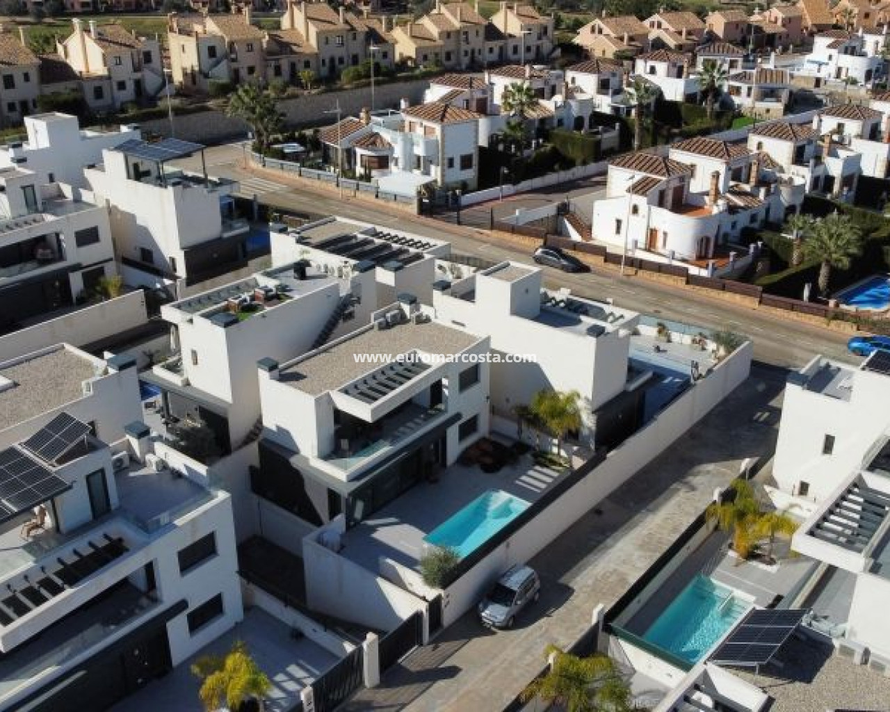 Moderna villa recien estrenada con apenas 1 semana de uso de 3 dormitorios y 2 baños situada en el prestigioso complejo La Finca Golf, una ubicación exclusiva que combina tranquilidad, naturaleza y servicios de primer nivel. La vivienda destaca por su diseño contemporáneo, sus acabados de alta calidad y sus amplios espacios interiores y exteriores, pensados para disfrutar del estilo de vida mediterráneo durante todo el año. En la planta principal se encuentra un luminoso salón-comedor de concepto abierto junto a una cocina moderna totalmente equipada con electrodomésticos de alta gama. Este nivel incluye también un dormitorio doble y un baño completo, ofreciendo comodidad y funcionalidad. La primera planta alberga dos dormitorios amplios y dos baños, además de una terraza soleada con vistas abiertas, ideal para relajarse o tomar el sol en privacidad. El gran sótano de 80 m² añade un valor excepcional a la propiedad, con una sala de cine privada, espacios versátiles para gimnasio u oficina y un garaje con capacidad para dos vehículos. El exterior es un auténtico oasis: un jardín cuidadosamente diseñado, piscina privada de 18 m², zona de barbacoa y amplias áreas para disfrutar del clima cálido de la Costa Blanca. Ubicada en una calle privada y tranquila, la villa se encuentra a pocos minutos del Hotel La Finca con su spa y restaurantes, así como de supermercados, tiendas y del encantador pueblo de Algorfa. Las playas de arena se encuentran a tan solo 10 km. Una propiedad que combina lujo, confort y una ubicación inmejorable. Visita muy recomendada.