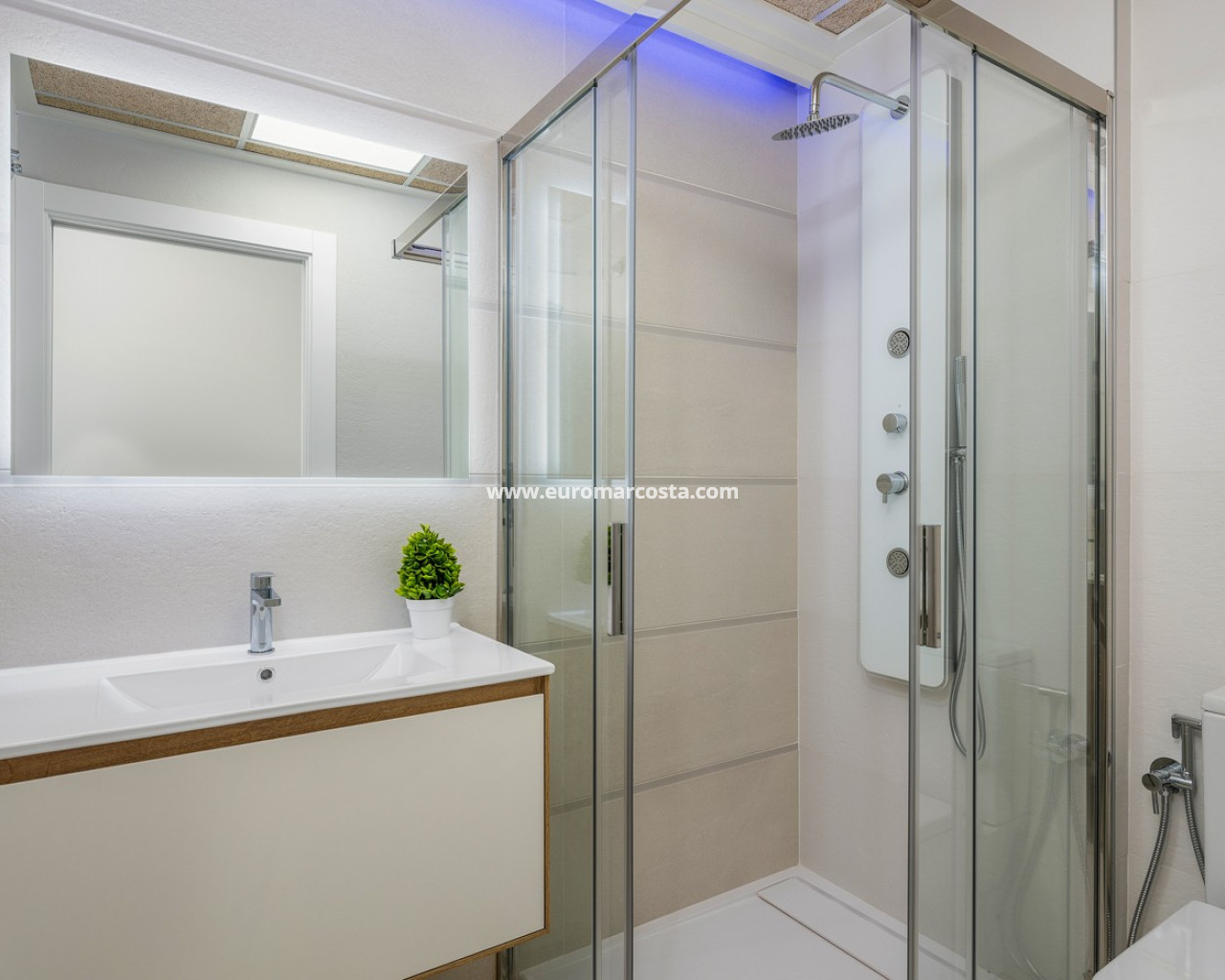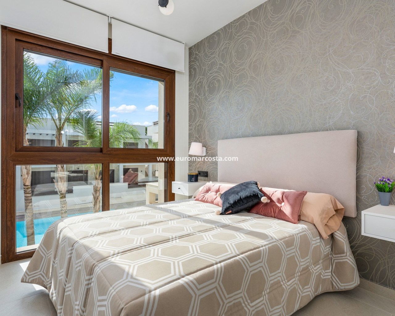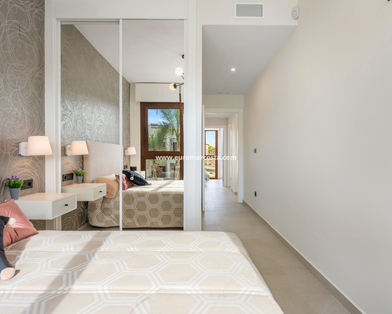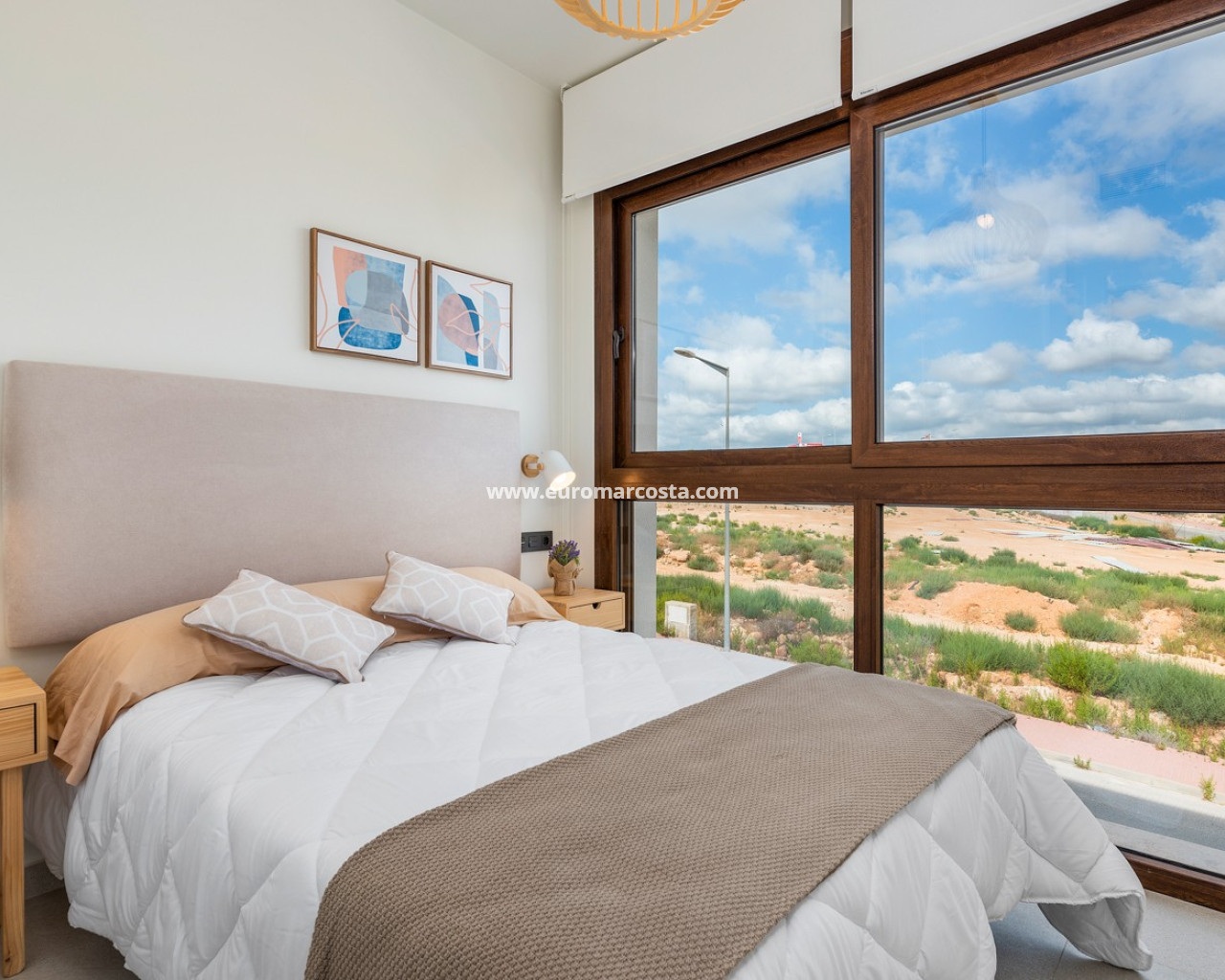 Bungalow de planta alta en urbanización de Torrevieja Qué suerte tendrás viviendo en este precioso bungalow de nueva construcción en Torrevieja. Pertenece a un lujoso residencial conocido como Los Balcones de Vivi, desde donde se divisan unas espectaculares vistas a La Laguna Rosa de Torrevieja. Un lugar como ningún otro para desconectar. La propiedad disfruta de una gran terraza privada que, cada mañana, cuenta con la presencia del inagotable sol de la Costa Blanca, además de unas bonitas vistas a los jardines y a las dos enormes piscinas comunitarias. Con el preciado clima del mediterráneo español, las zonas exteriores se convertirán en tu rincón sagrado. Podrás respirar el aire limpio y puro de la naturaleza y el mar Mediterráneo. Los interiores de la casa te conectan con estos preciosos exteriores gracias al diseño de sus puertas cristaleras y ventanales. Te sorprenderá descubrir qué se esconde en sus 70 m2: una cocina abierta moderna con barra para el desayuno, un luminoso salón comedor multifunctional, 3 habitaciones llenas de confort y 2 baños de ducha con las más altas especificaciones. Vivirás en una de las zonas más codiciadas de Torrevieja, con mucha oferta de ocio y muchos atractivos a tu alrededor: Paraje Natural de Lagunas de Torrevieja – La Mata Playas y calas de arenas suaves y aguas transparentes, certificadas con la Q de Calidad Turística 4 Campos de Golf, entre ellos Las Colinas Golf & Country Club Senderos y parques ecológicos ideales para pasear, fotografiar y caminar junto a tu mascota Centro comercial La Zenia Boulevard, el más grande de la provincia de Alicante Este bungalow busca un propietario como tú, con ganas de disfrutar del sol, las terrazas y todas las comodidades de la Costa Blanca Sur.